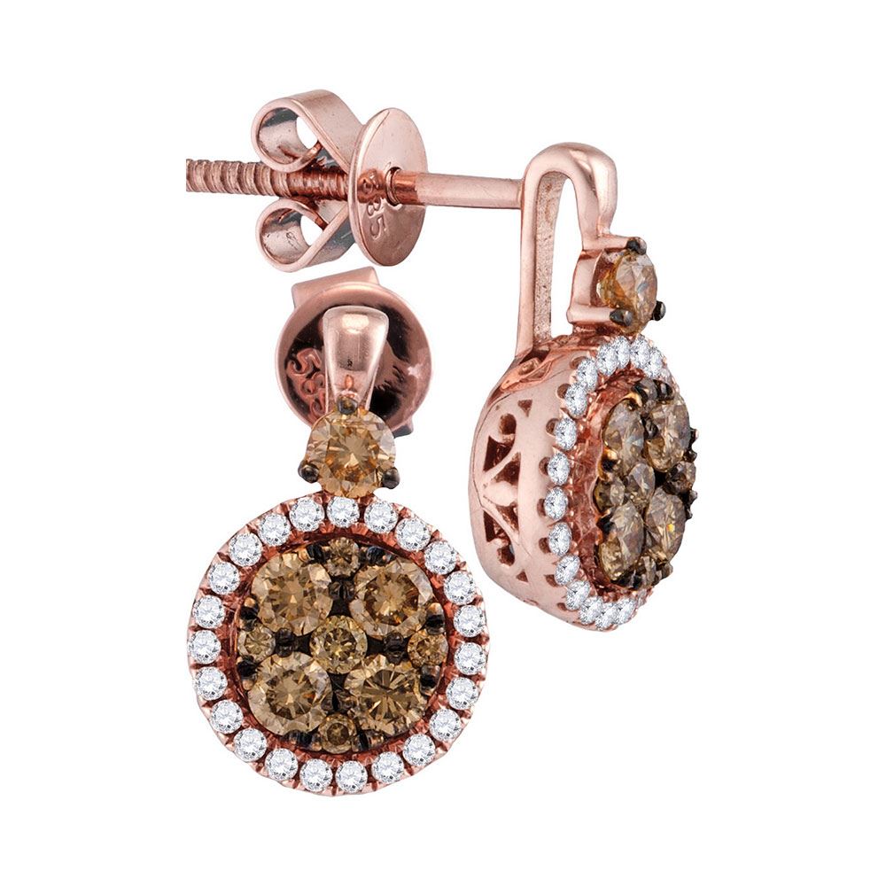 REF-97W4K- SKU: GD94698 ---- 0.86 CTW Cognac-brown Color Diamond Cluster Earrings 14KT Rose Gold