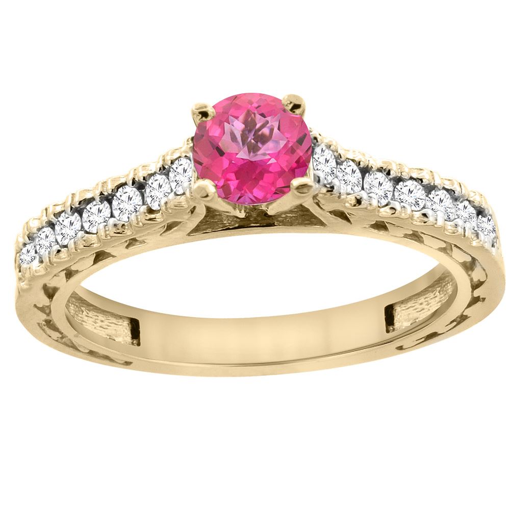 REF-62R4H - SKU: SC-CY406285 ---- 0.86 CTW Pink Topaz & Diamond Ring 14K Yellow Gold