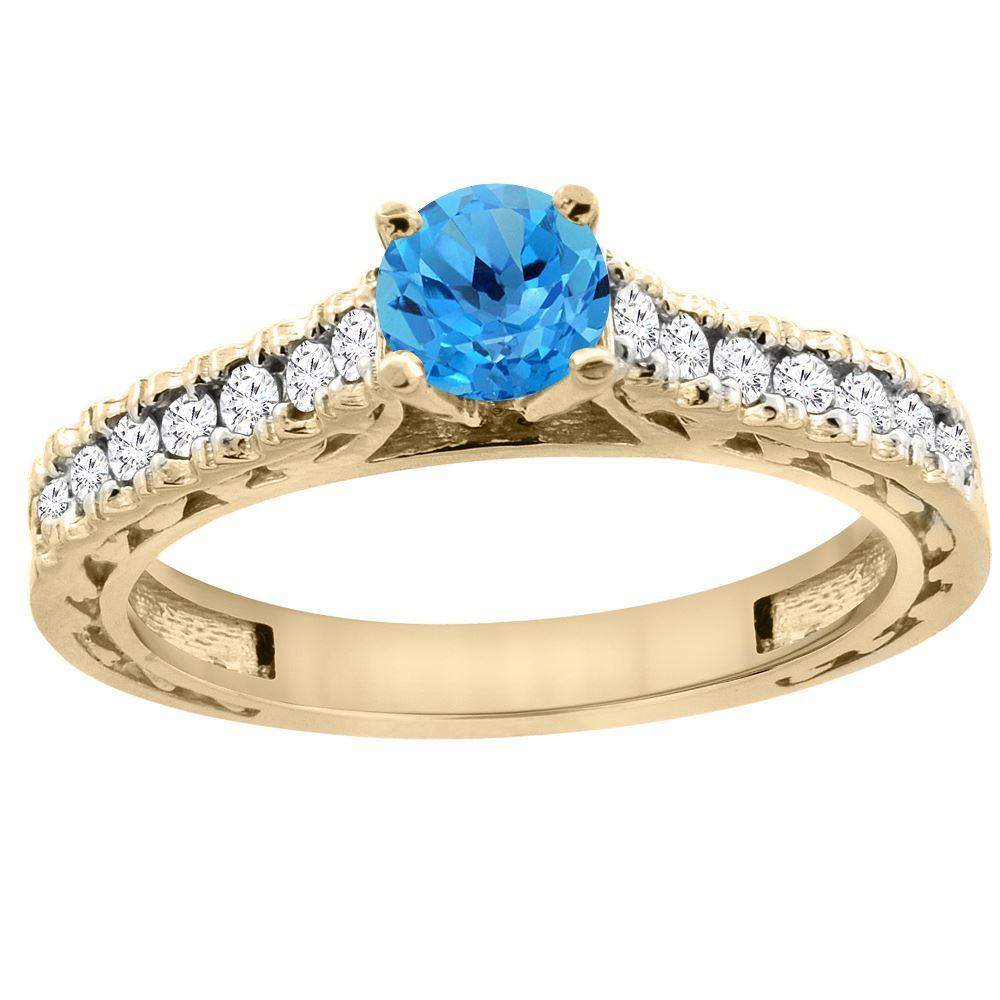 REF-62W4F - SKU: SC-CY404285 ---- 0.86 CTW Swiss Blue Topaz & Diamond Ring 14K Yellow Gold