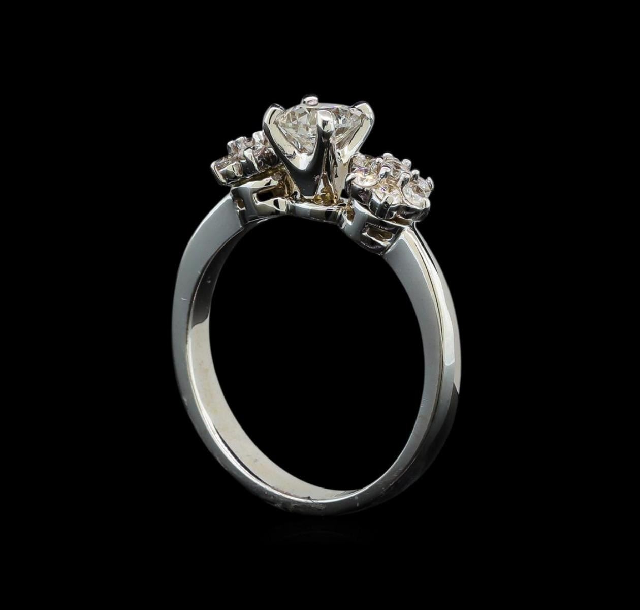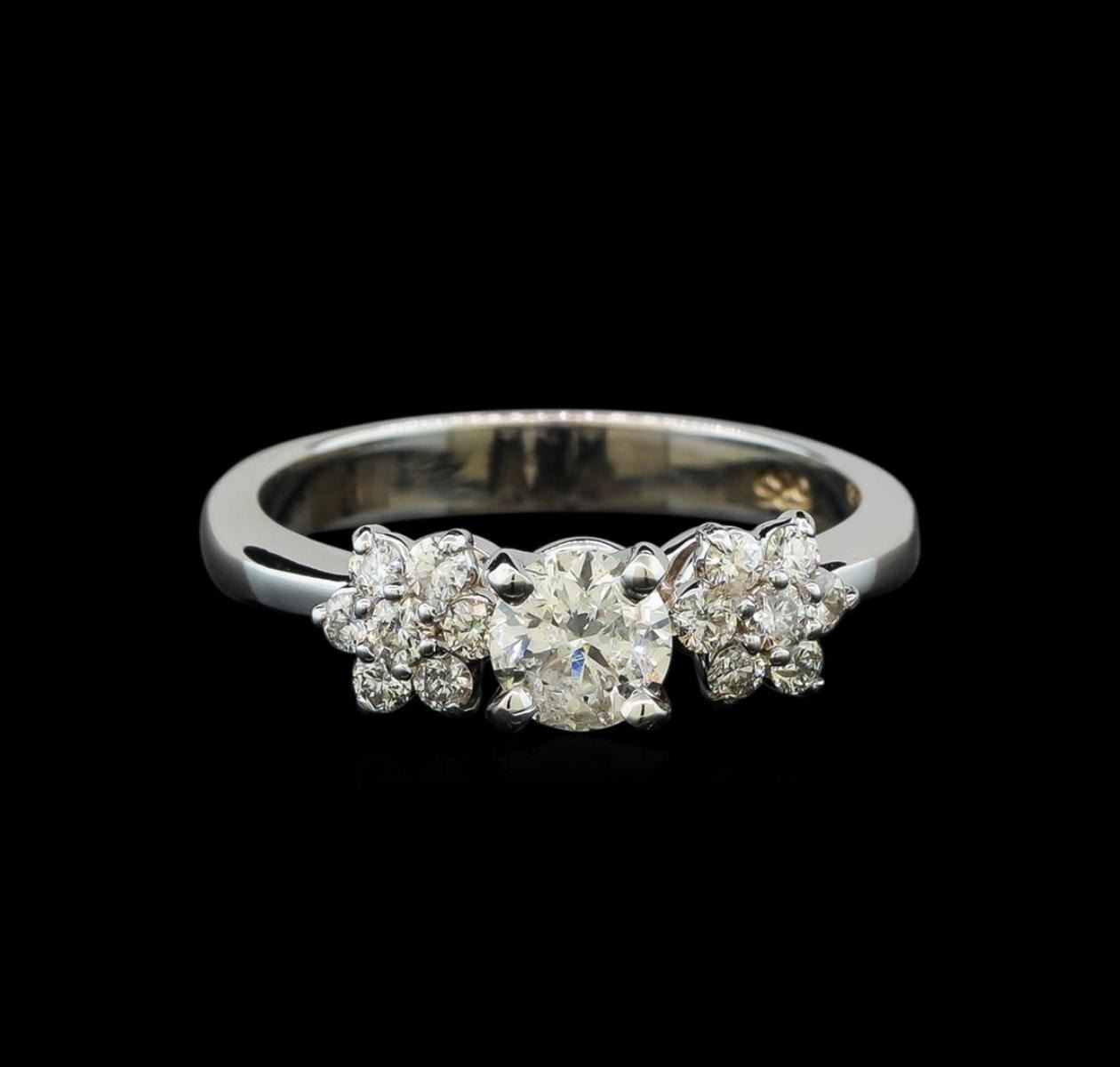 One electronically tested 14KT white gold lady's combination cast & assembled wedding ring with a bright polish finish. The featured lady's ring has a shank measuring 3.05 millimeters wide. Identified with markings of '585'. Condition is new, good workmanship. Containing: One prong set round brilliant cut diamond, measuring 5.07 - 5.04 x 3.14mm (depth est.) , 3.00.%. GTCF approximate weight of 0.55ct. Graded in the setting. Clarity I-1. Color: H Cut Good Two prong set round brilliant cut diamonds, measuring 2.10 - 2.00 x 1.23mm (depth est.) approximate total weight of 2 Stones = 0.06ct. Graded in the setting. Clarity SI-2. Color: I Cut Good Twelve prong set round brilliant cut diamonds, measuring 1.80 - 1.70 x 1.09mm (depth est.) approximate total weight of 12 Stones = 0.25ct. Graded in the setting. Clarity SI-1 to SI-2. Color: I Cut Good. Total Weight of Diamonds 0.86ct.. Total Weight of Ring 4.00gm. GAS Appraised.