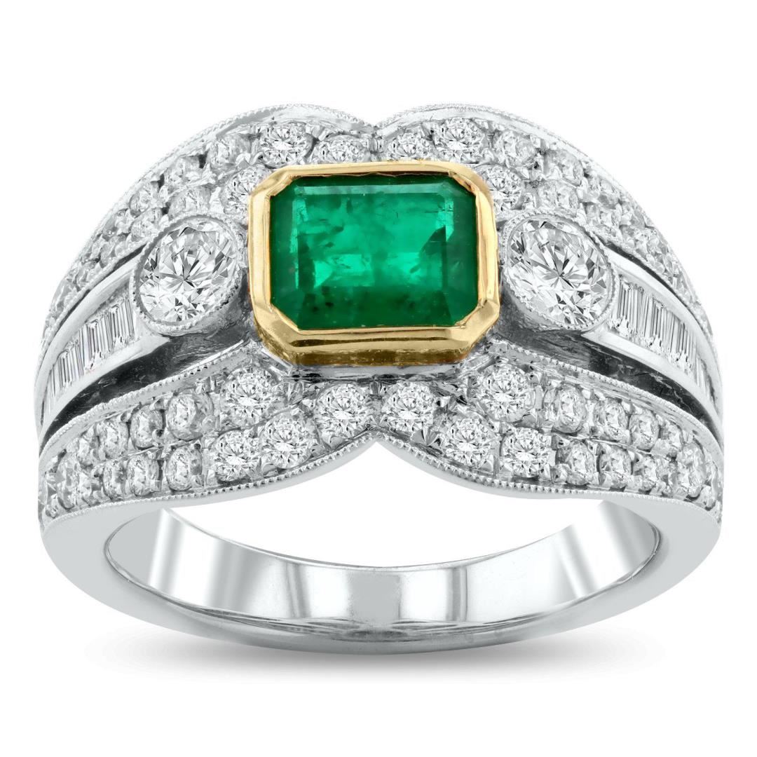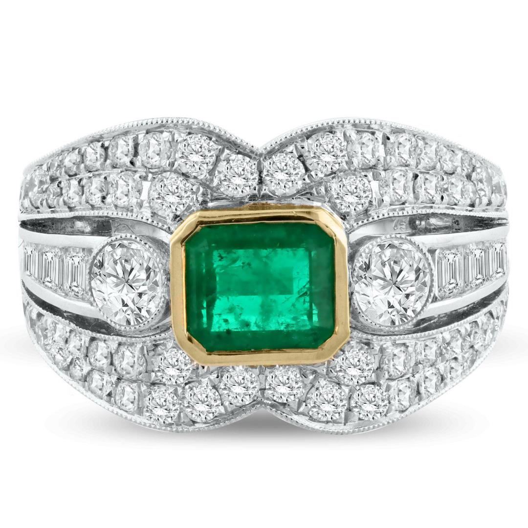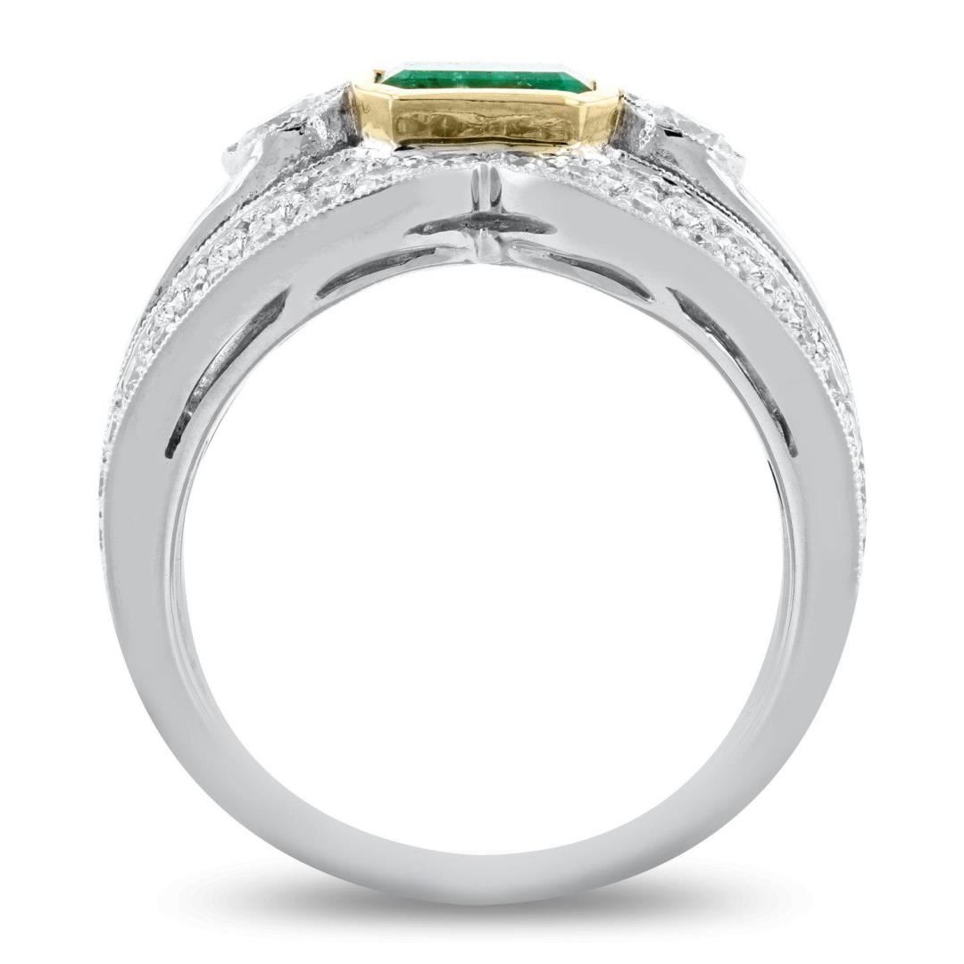0.86 ctw Emerald and 1.44 ctw Diamond 18KT White and Yellow Gold Ring