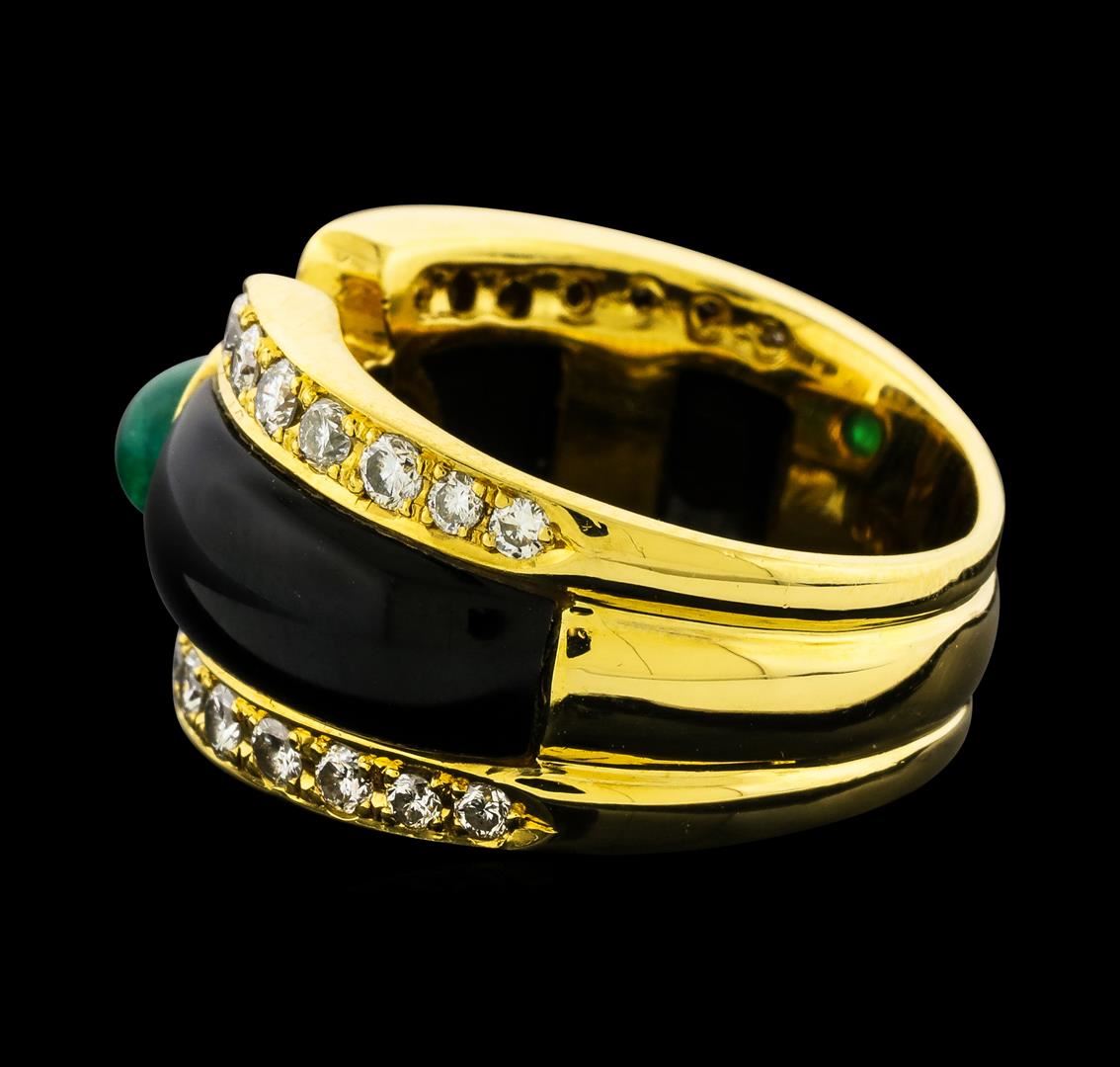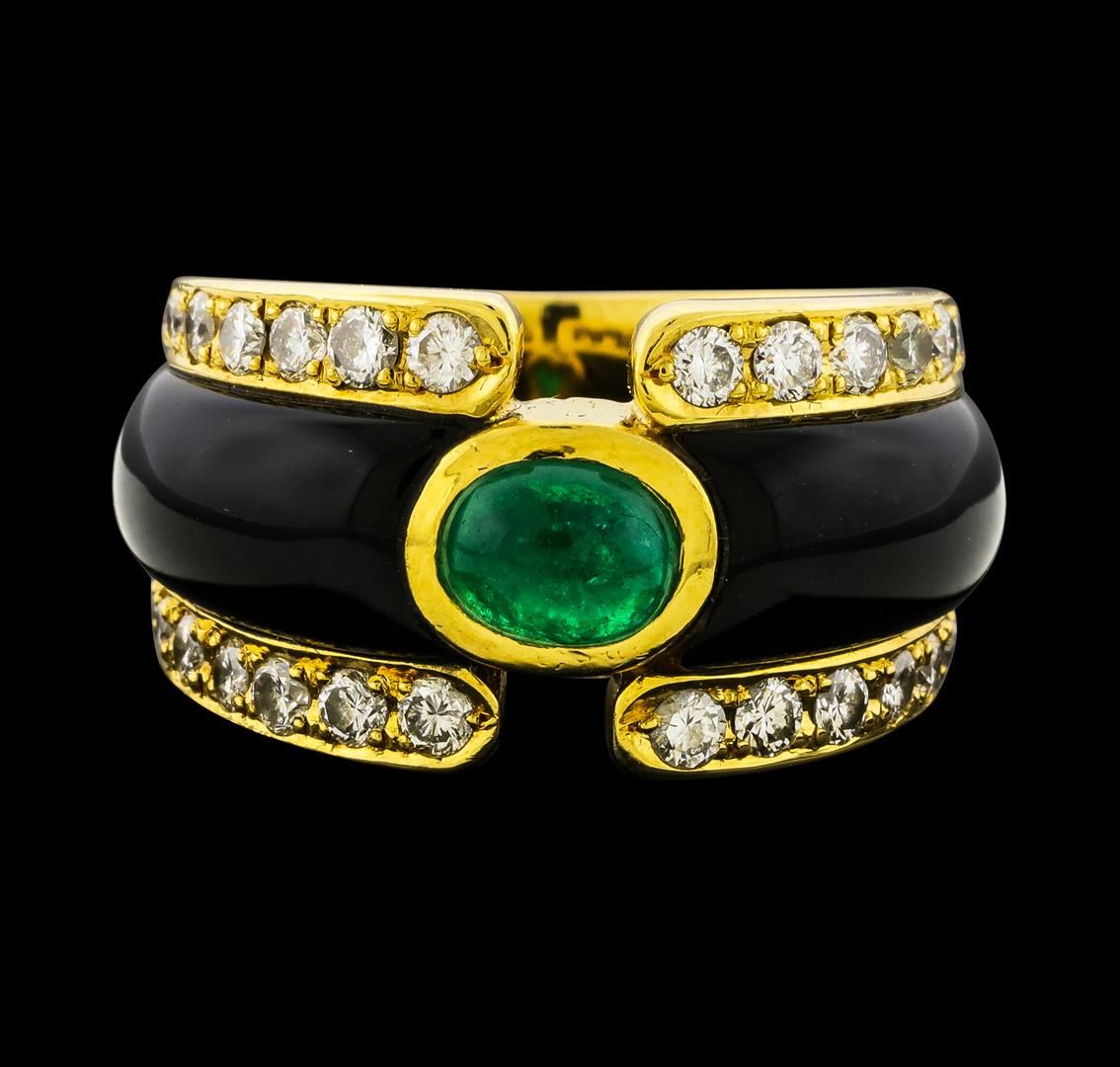 One ring featuring: 18KT Yellow Gold containing Emerald with a total weight of 0.86ct and Diamonds with a total weight of 0.82ct. Total Weight of Ring: 13.1 grams.