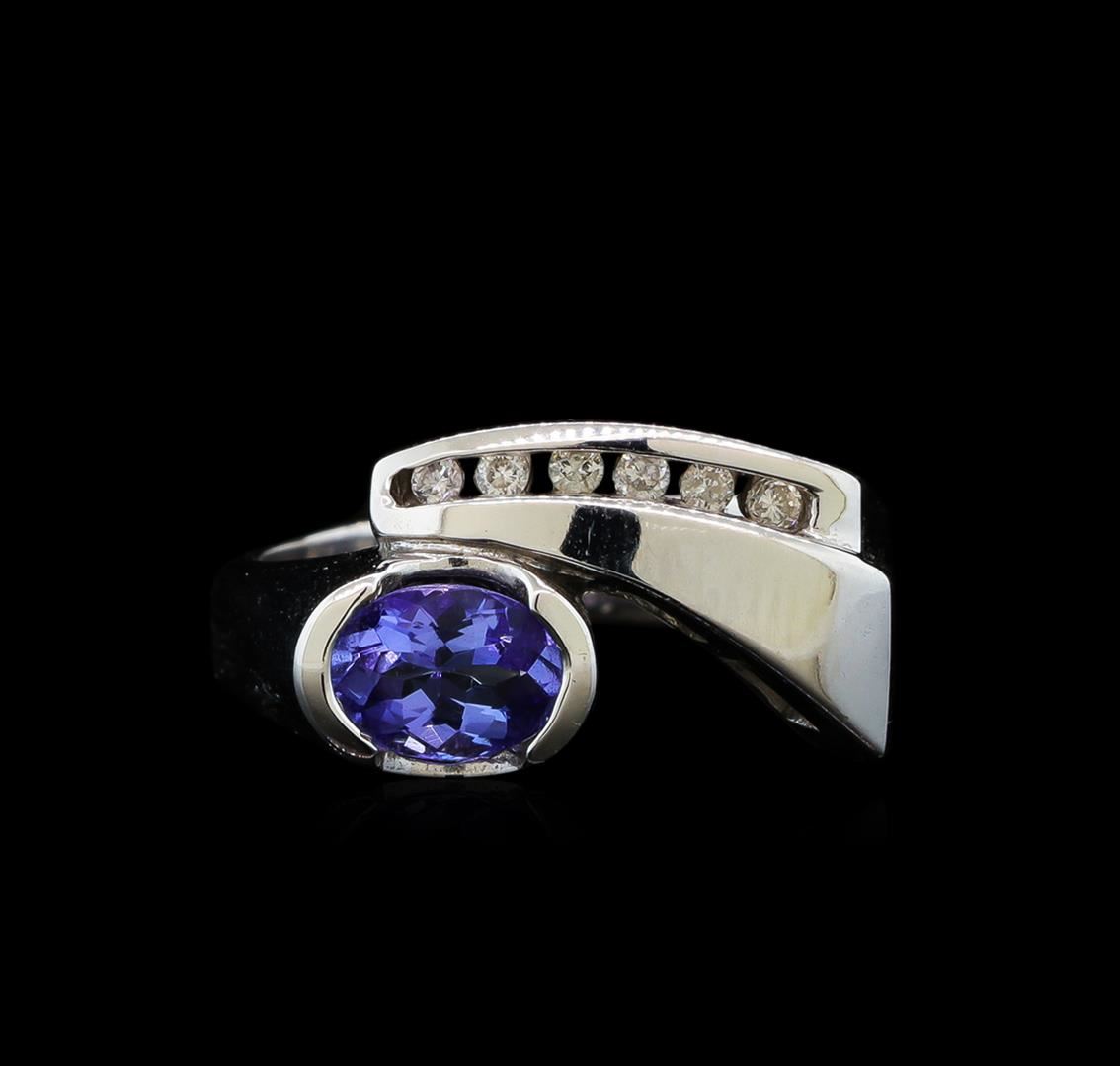 One ring featuring: 14KT white gold containing Tanzanite with a total weight of 0.86ct and diamonds with a total weight of 0.09ctw.