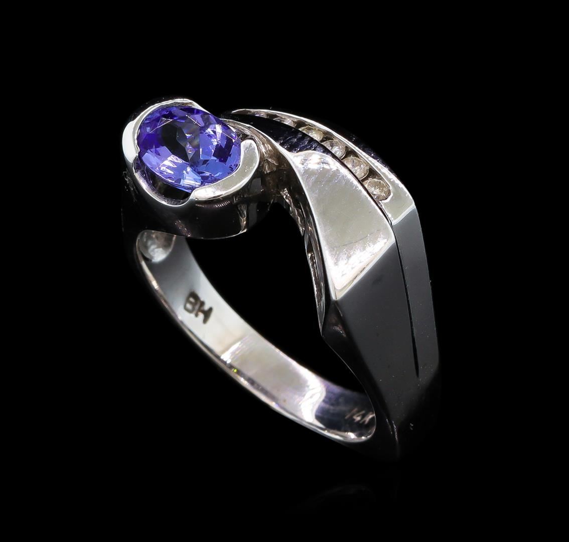 One ring featuring: 14KT white gold containing Tanzanite with a total weight of 0.86ct and diamonds with a total weight of 0.09ctw.