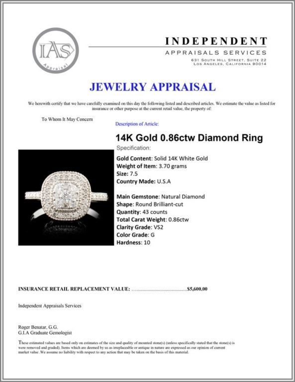 Regarding Appraised Jewelry and Loose Stones - Auctionfarm sends them out to a third party for Retail Replacement Value Appraisals, which are the most common. These types of evaluations are written for insurance needs. This would be the cost to replace the jewelry with an item of equal quality and kind, considered to be the current market price or the replacement value. This type of appraisal is done to protect you in the event of damage or loss of a valuable item. Our appraisals are conducted by independent 3rd Party appraisal firms that utilizes Certified GIA Gemologist. Appraisals should be used for verification of gemstone and/or metal weight, size, and grade only, not actual value. Appraisal value should be considered for insurance purposes only, not actual value, as price varies greatly from retail locations thru out the world. Items should not be purchased with the expectation to resell for appraisal price, or for profit.