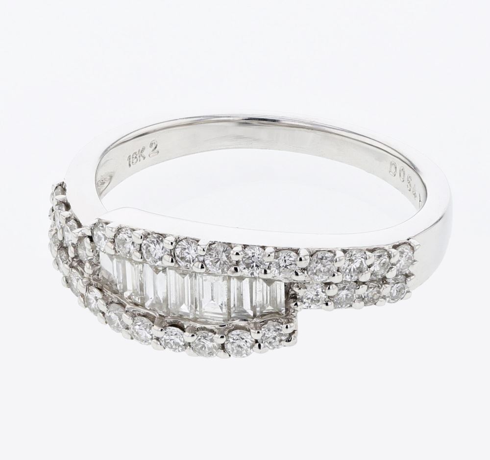 REF-91W5H - JF232094 ---- 0.87 CTW Baguette & White Round Diamond Ring 18K White Gold
