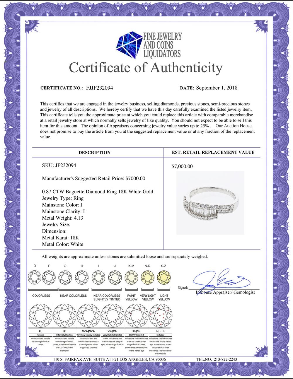 All Gia and EGL Diamonds are subject to availability due to consignors’ terms with us.
