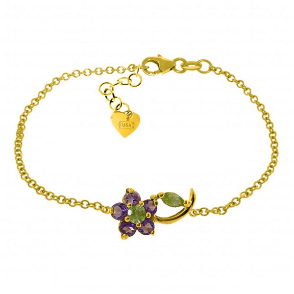 Genuine 14K Yellow Gold 0.87 ctw Peridot & Amethyst Bracelet
