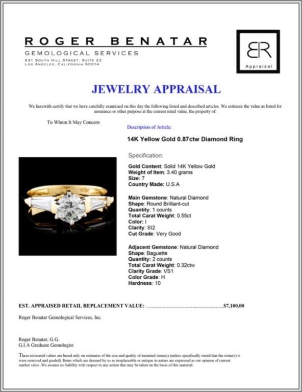 Regarding Appraised Jewelry and Loose Stones - Auctionfarm sends them out to a third party for Retail Replacement Value Appraisals, which are the most common. These types of evaluations are written for insurance needs. This would be the cost to replace the jewelry with an item of equal quality and kind, considered to be the current market price or the replacement value. This type of appraisal is done to protect you in the event of damage or loss of a valuable item. Our appraisals are conducted by independent 3rd Party appraisal firms that utilizes Certified GIA Gemologist. Appraisals should be used for verification of gemstone and/or metal weight, size, and grade only, not actual value. Appraisal value should be considered for insurance purposes only, not actual value, as price varies greatly from retail locations thru out the world. Items should not be purchased with the expectation to resell for appraisal price, or for profit.