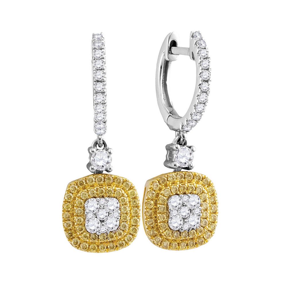 REF-142F4N- SKU: GD102750 ---- 0.88 CTW Yellow Diamond Square Cluster Dangle Earrings 18KT White Gold