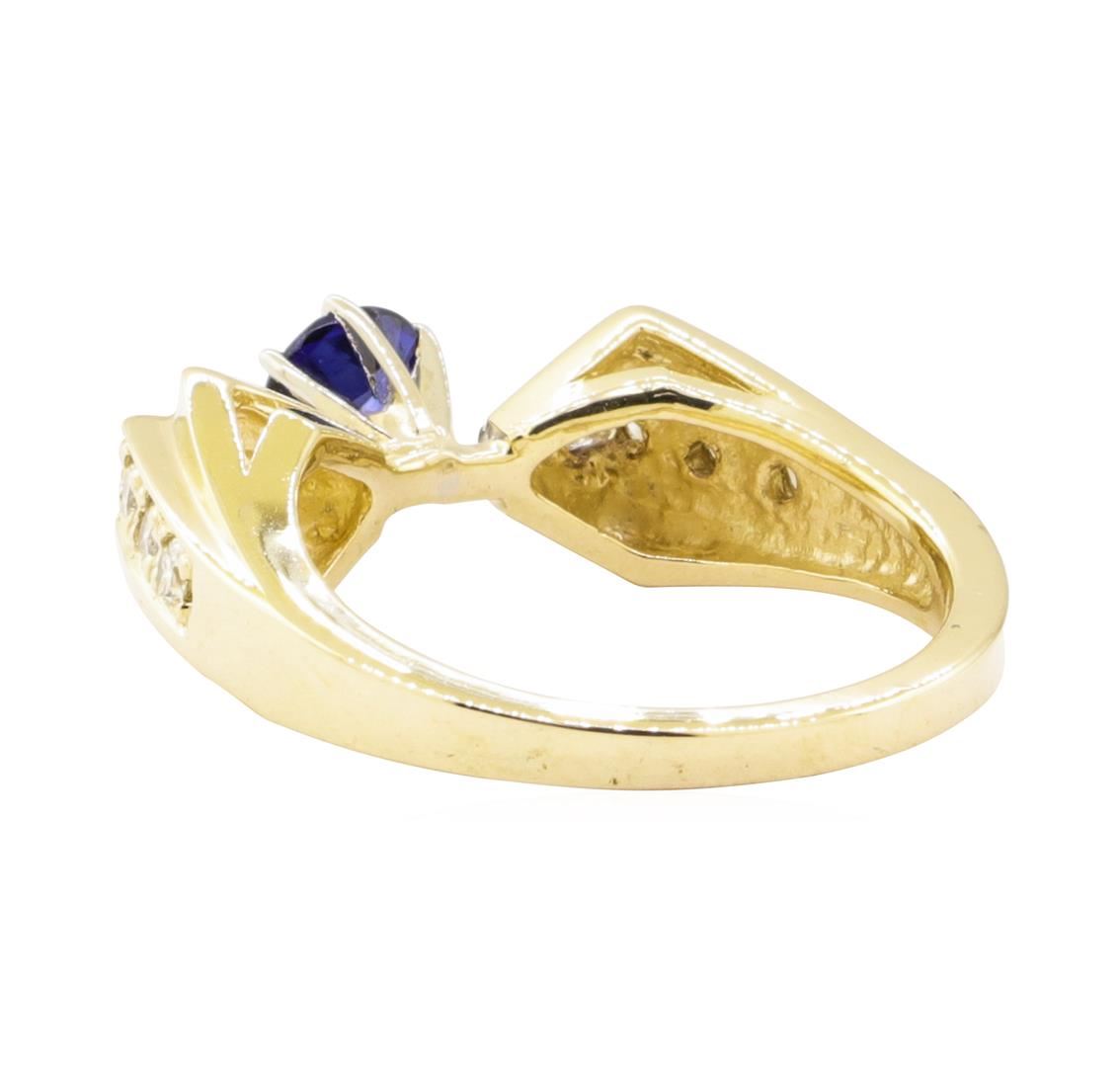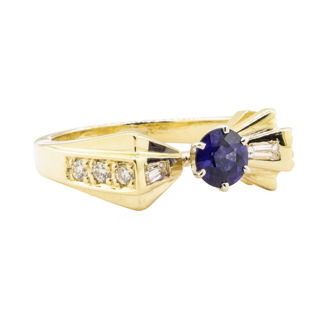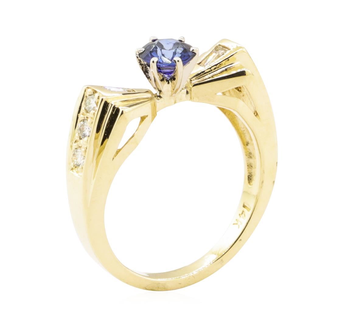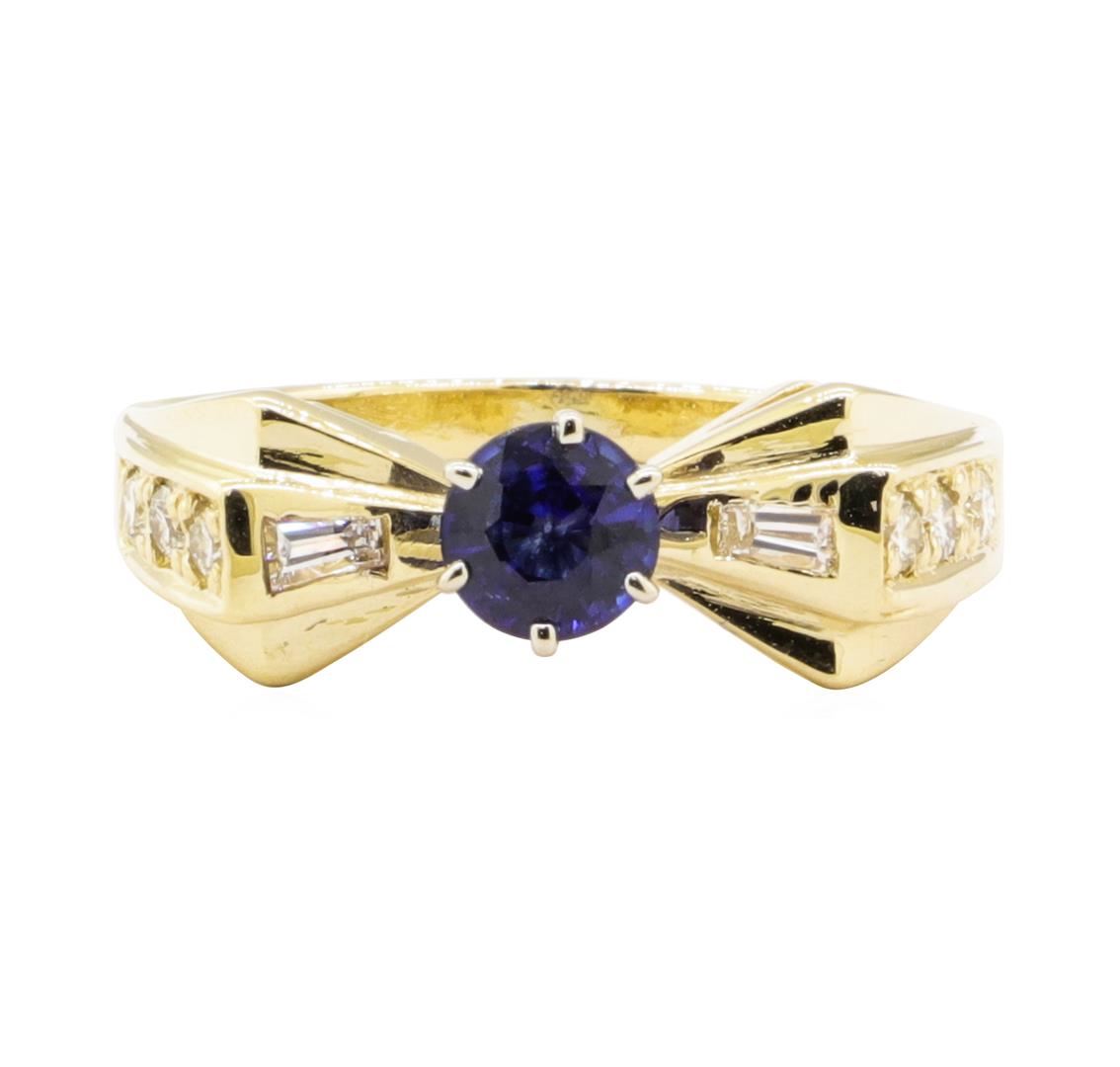 One ring featuring: 14KT yellow gold weighing 4.6 grams containing one blue sapphire weighing 0.58ctw and diamonds weighing 0.30ctw.