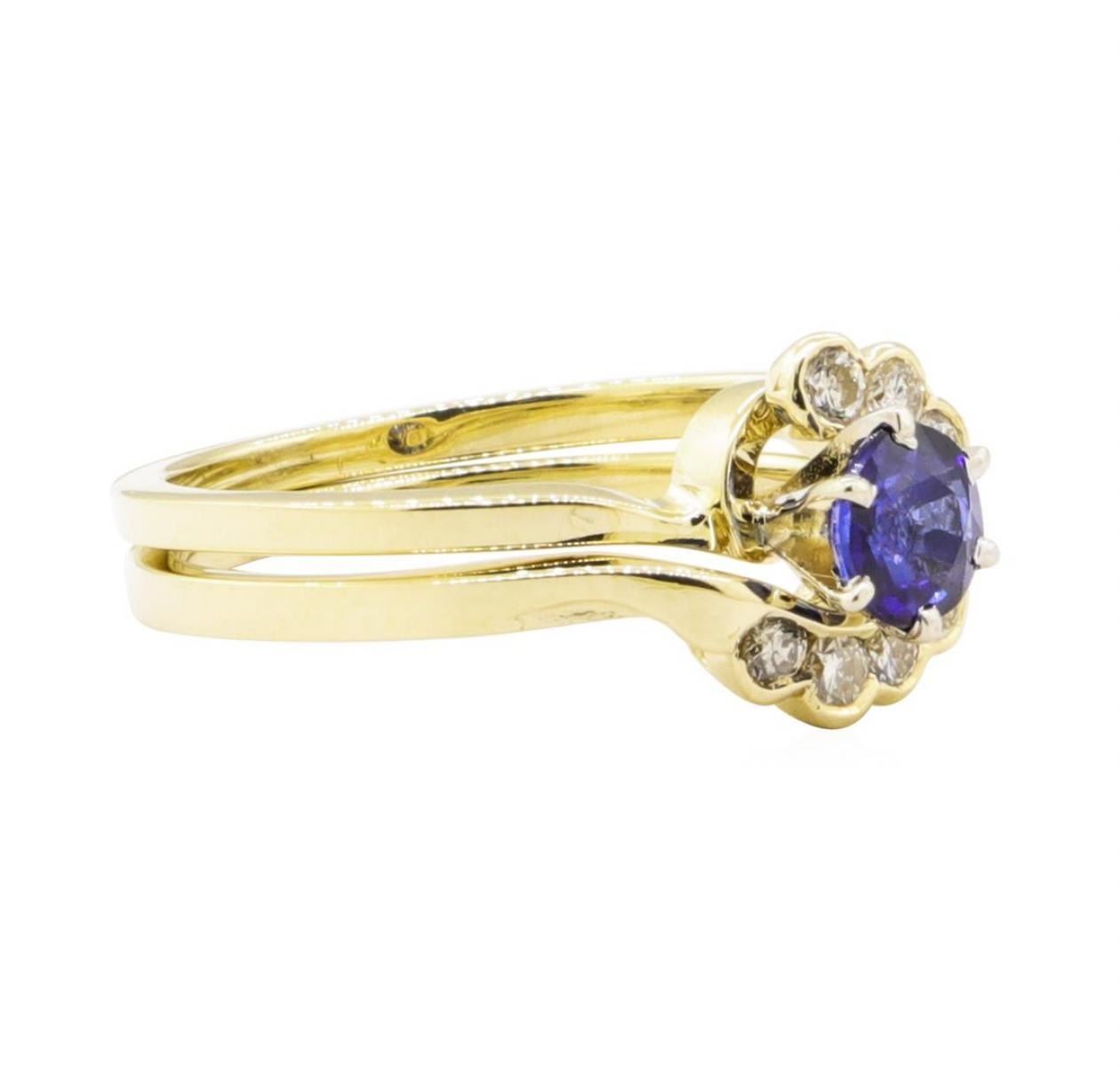 One ring set featuring: 14KT yellow gold weighing 4.0 grams containing one blue sapphire weighing 0.58ctw and diamonds weighing 0.30ctw.