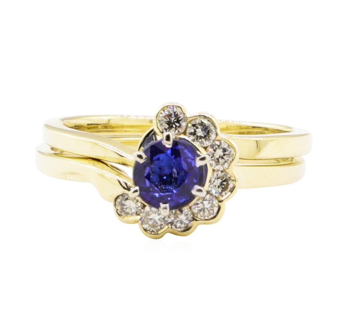 One ring set featuring: 14KT yellow gold weighing 4.0 grams containing one blue sapphire weighing 0.58ctw and diamonds weighing 0.30 ctw.