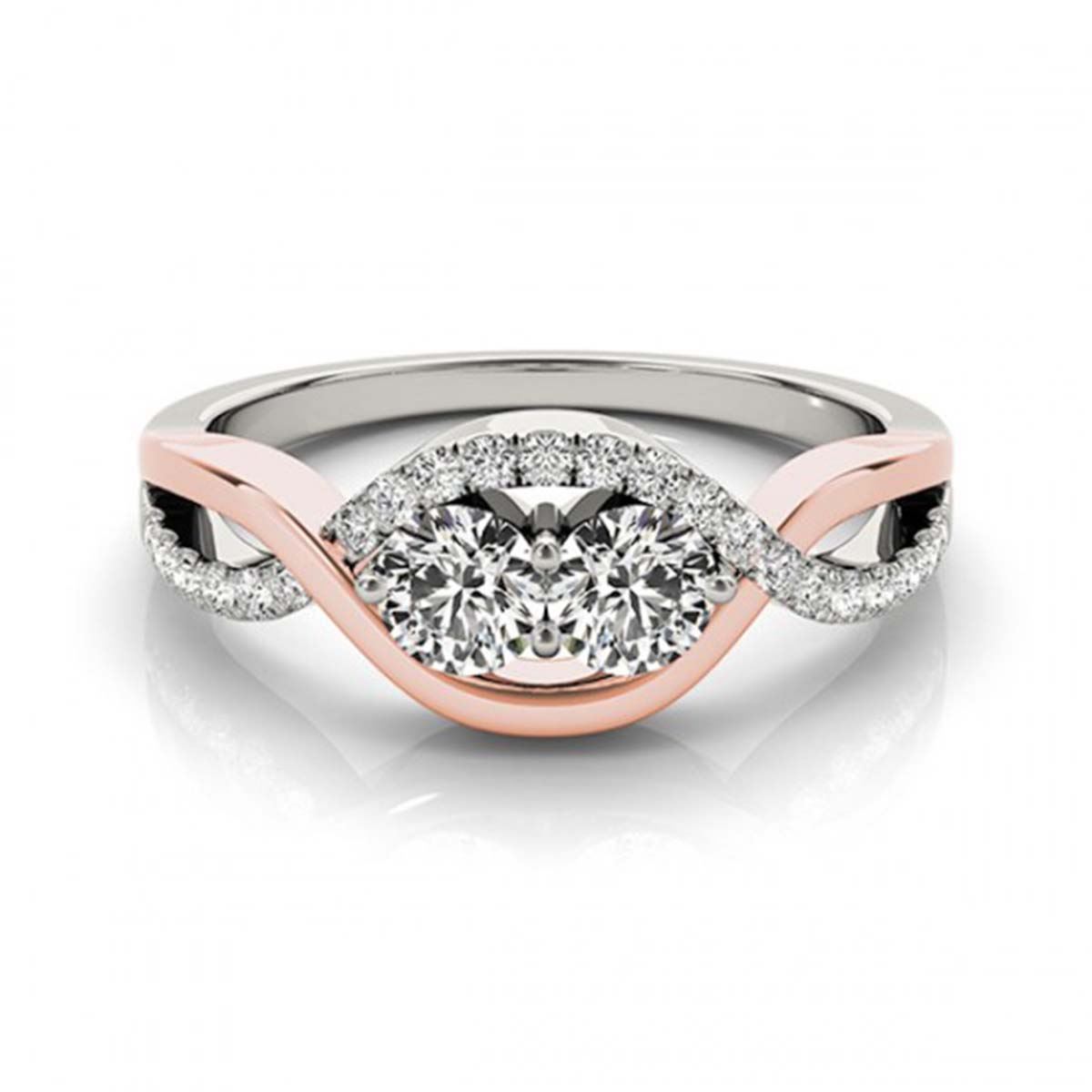 REF-88H5M - SKU:26029 ---- 0.88 ctw VS/SI Diamond 2 Stone Ring 14K White & Rose Gold