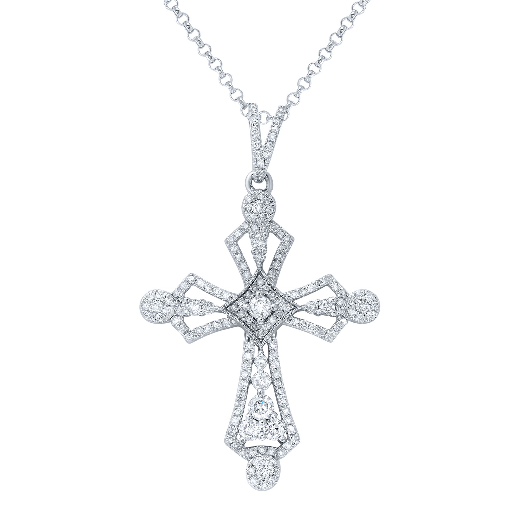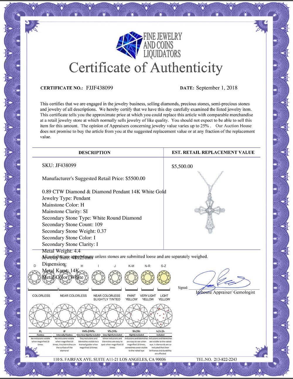 REF-70M4F - JF438099 ---- 0.89 CTW White Round Diamond Pendant 14K White Gold