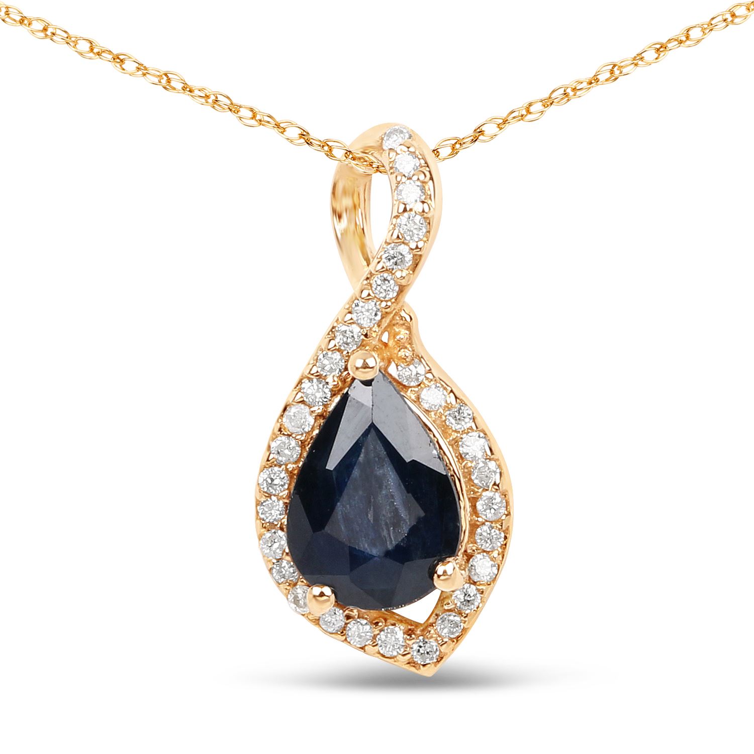REF-34R6K ---- 0.89 ctw Sapphire Blue & Diamond Pendant 14K Yellow Gold