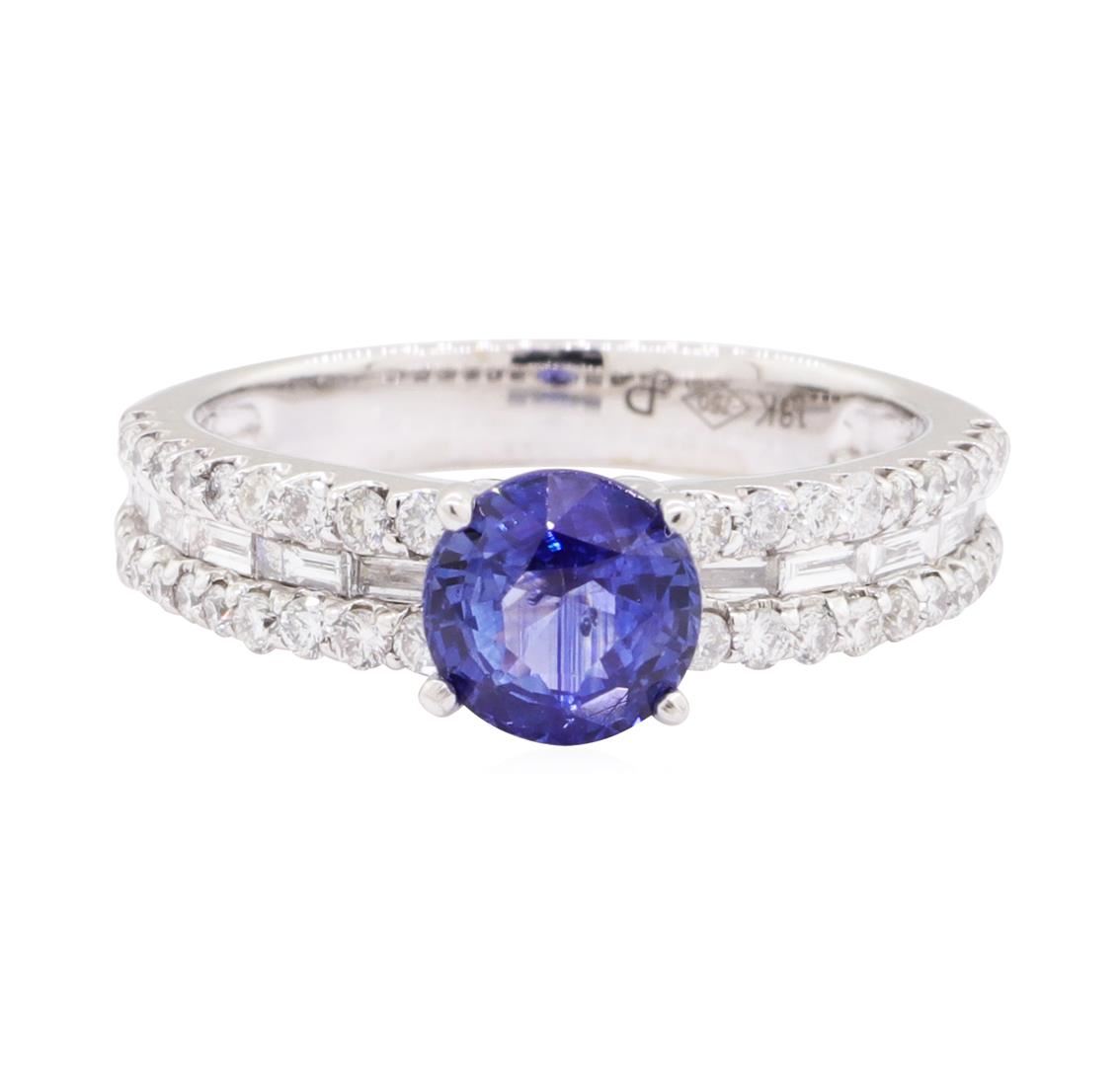One lady's ring featuring: 18KT white gold weighing 3.4 grams containing one center sapphire weighing 0.89ct and diamonds weighing 0.60ctw.