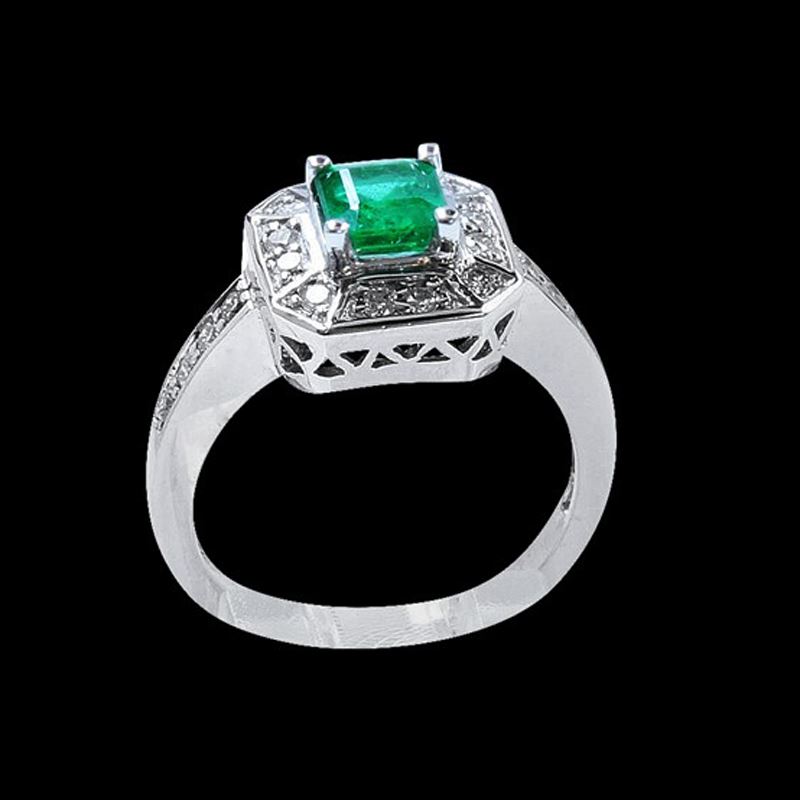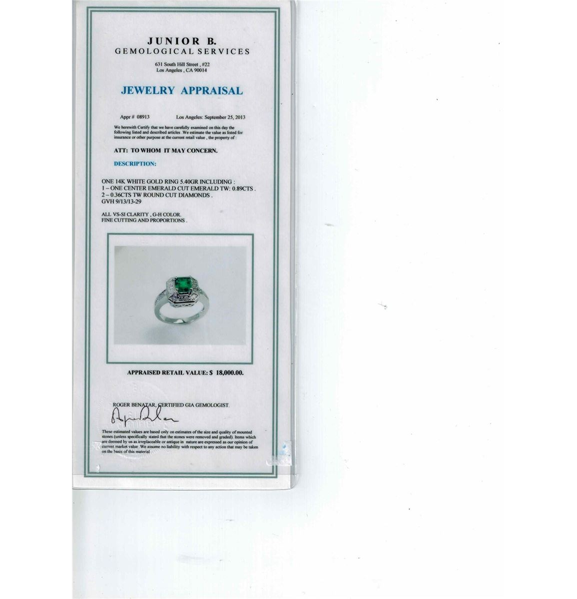 14K WHITE GOLD NATURAL COLUMBIAN EMERALD RING :5.40GRAM /EMERALD: 0.89CT/DIAMOND RD :0.36CT/#GVR1284