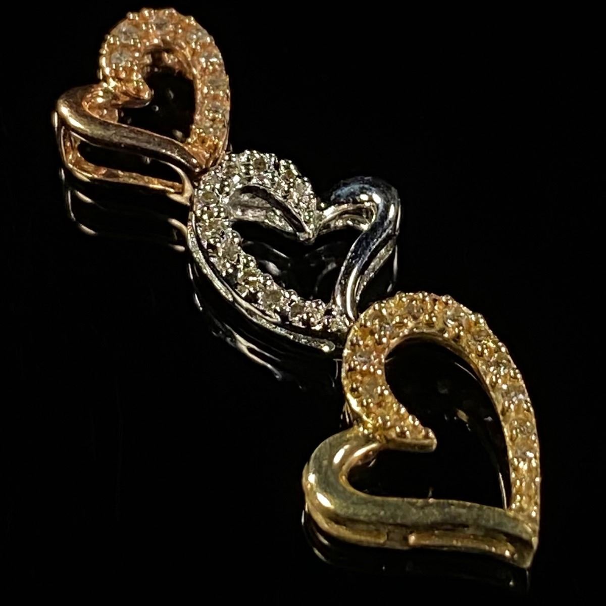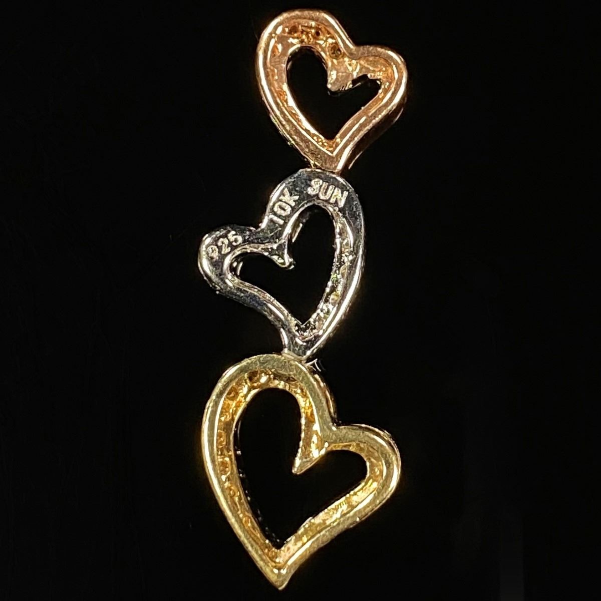 0.9 DWT 10 KT Gold Trpl Heart Pendant w/ Diamond