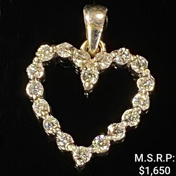 0.9 DWT 14 KT Wht Gold Heart Pendant w/ Diamond