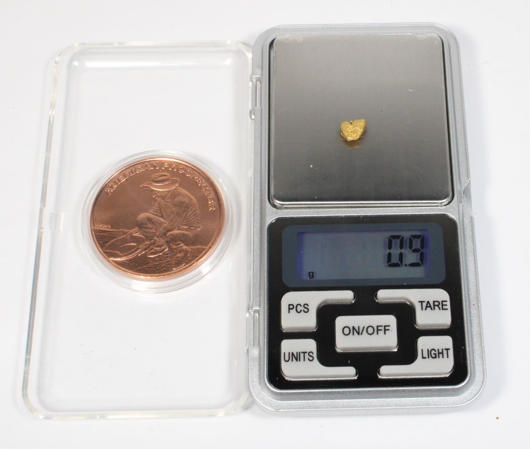 TINY BUT WEIGHT GUARANTEED. COMES WITH BONUS 1 OZ PROSPECTOR COPPER ROUND