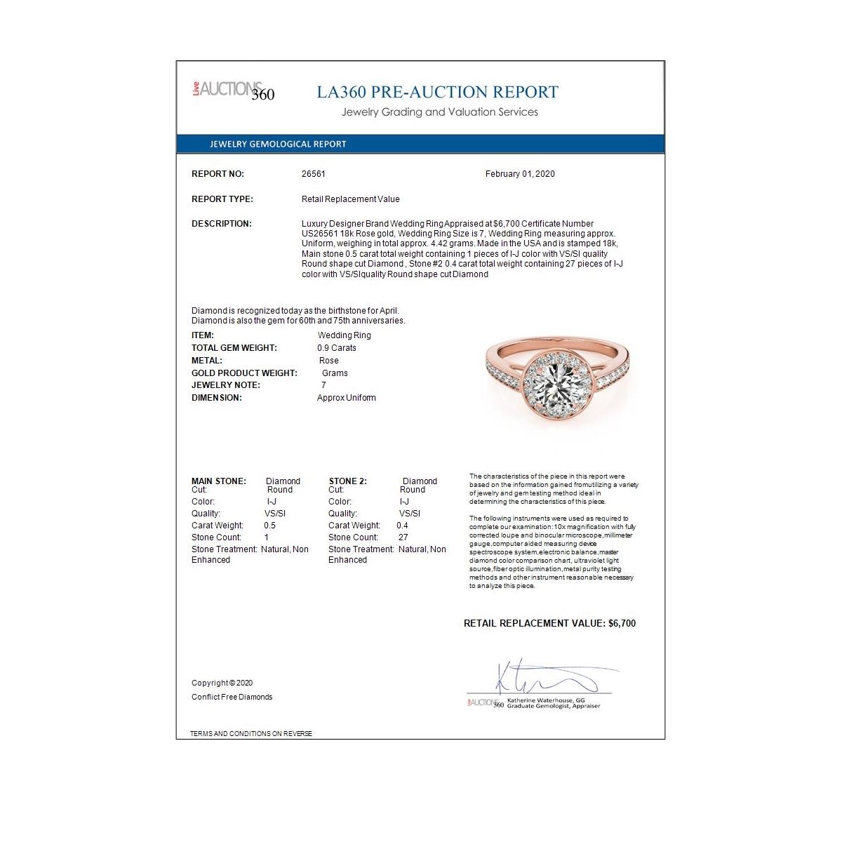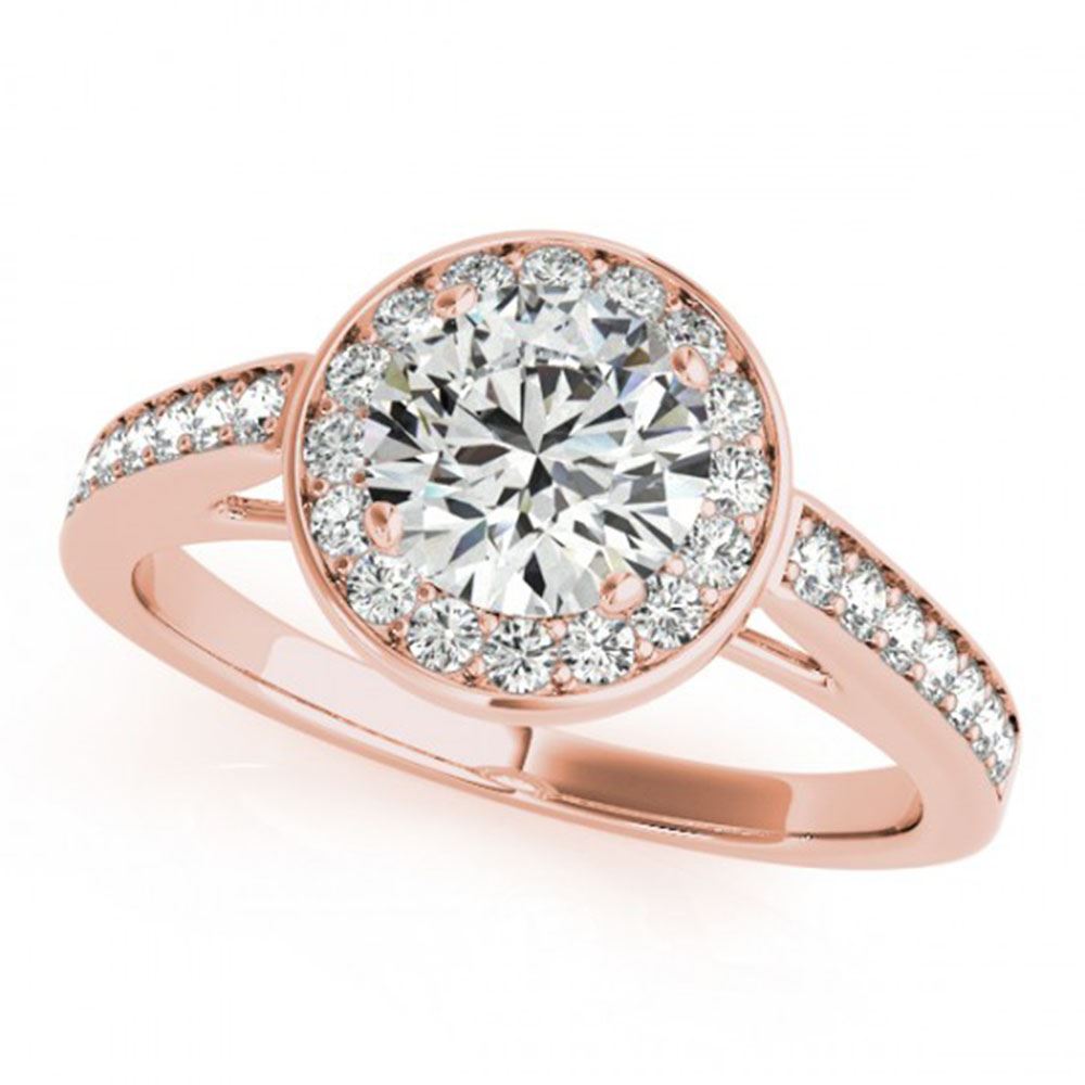 REF-91H5R - SKU: 26561 ---- 0.9 ctw Certified VS/SI Diamond Halo Ring 18k Rose Gold