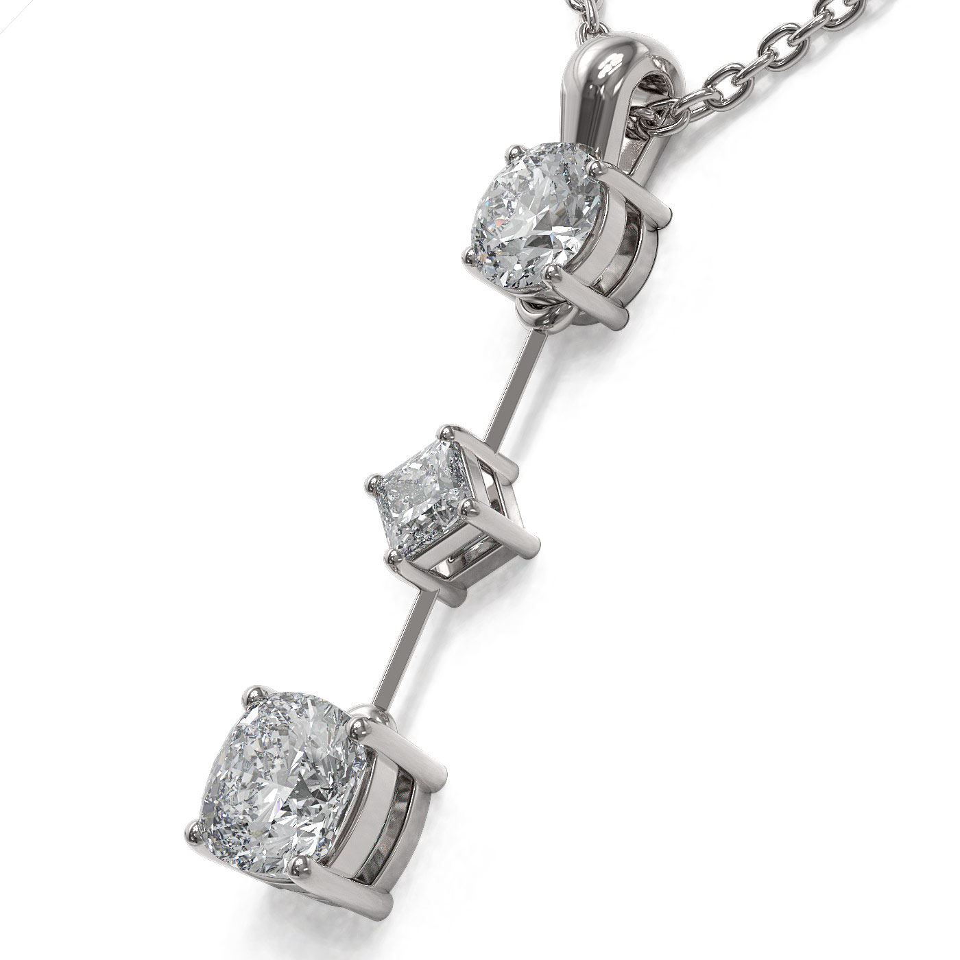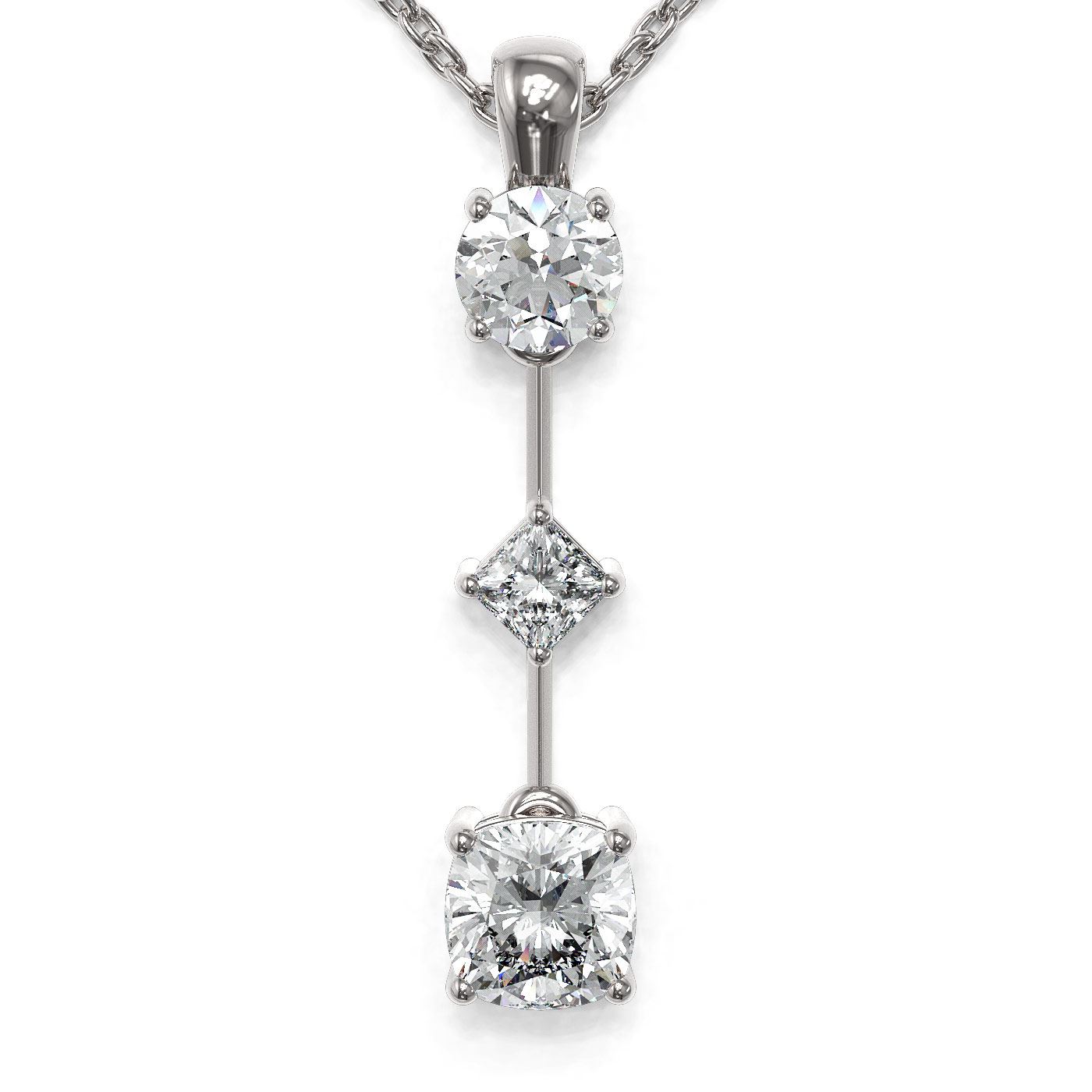 REF-121A2N - SKU: 48696 ---- 0.9 ctw Cushion Cut Diamond Designer Necklace 18K White Gold