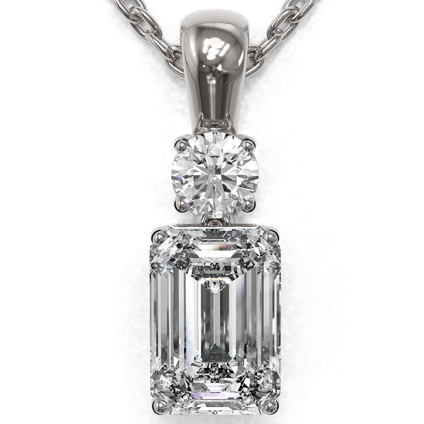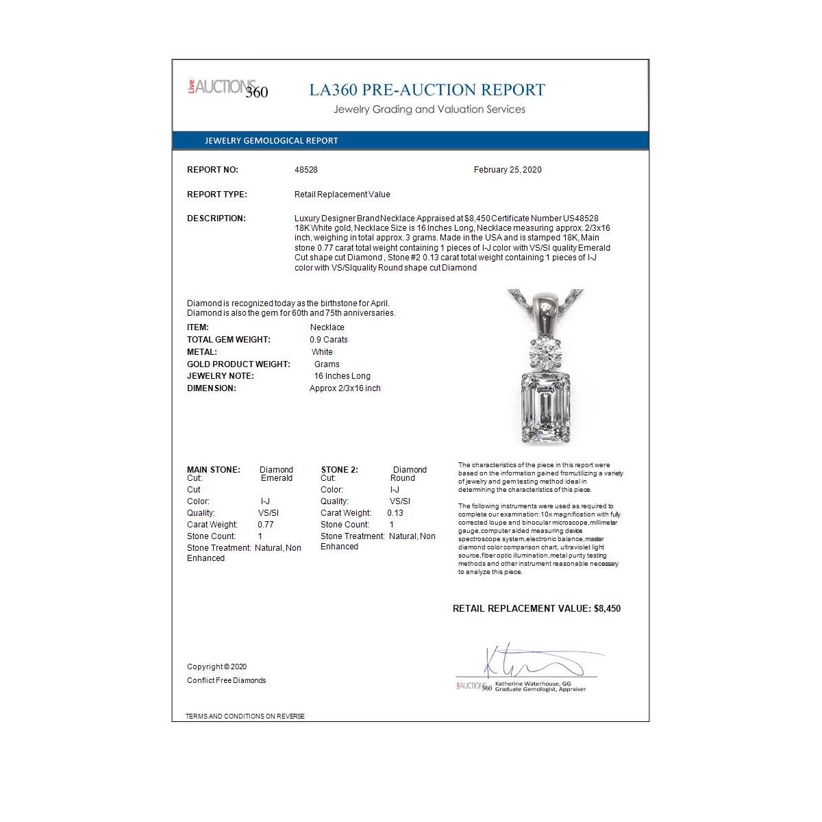 REF-191K8Y - SKU: 48528 ---- 0.9 ctw Emerald Cut Diamond Designer Necklace 18K White Gold