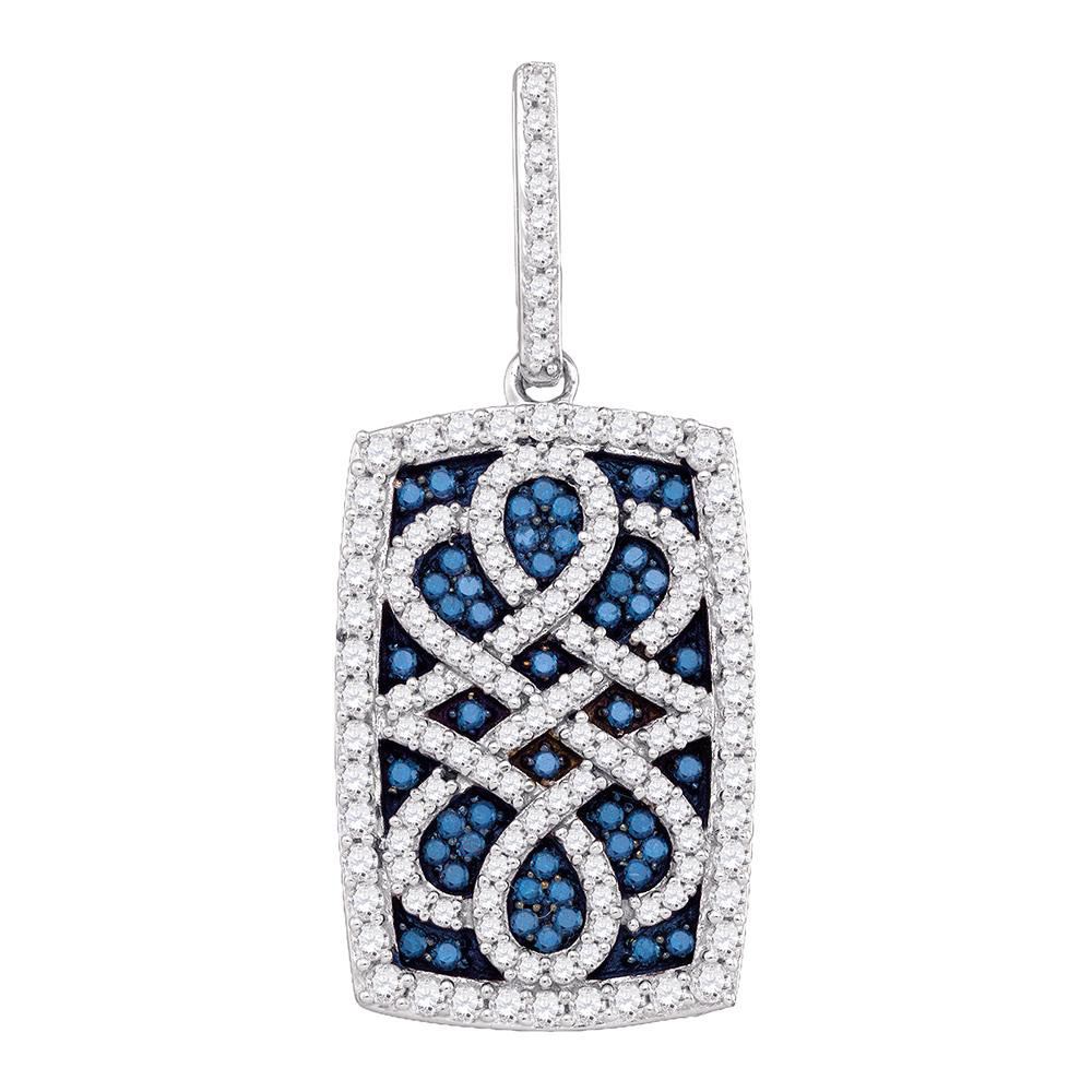 REF-49X5Y- SKU: GD81956 ---- 0.90 CTWBlue Color Diamond Rectangle Cluster Pendant 10KT White Gold