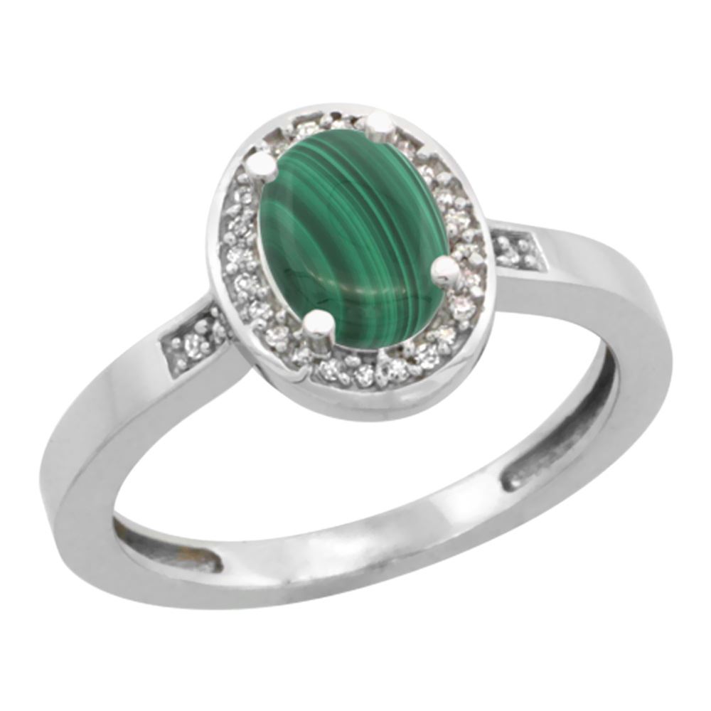 REF-37K3W - SKU: SC-CW447150 ---- 0.90 CTW Malachite & Diamond Ring 14K White Gold
