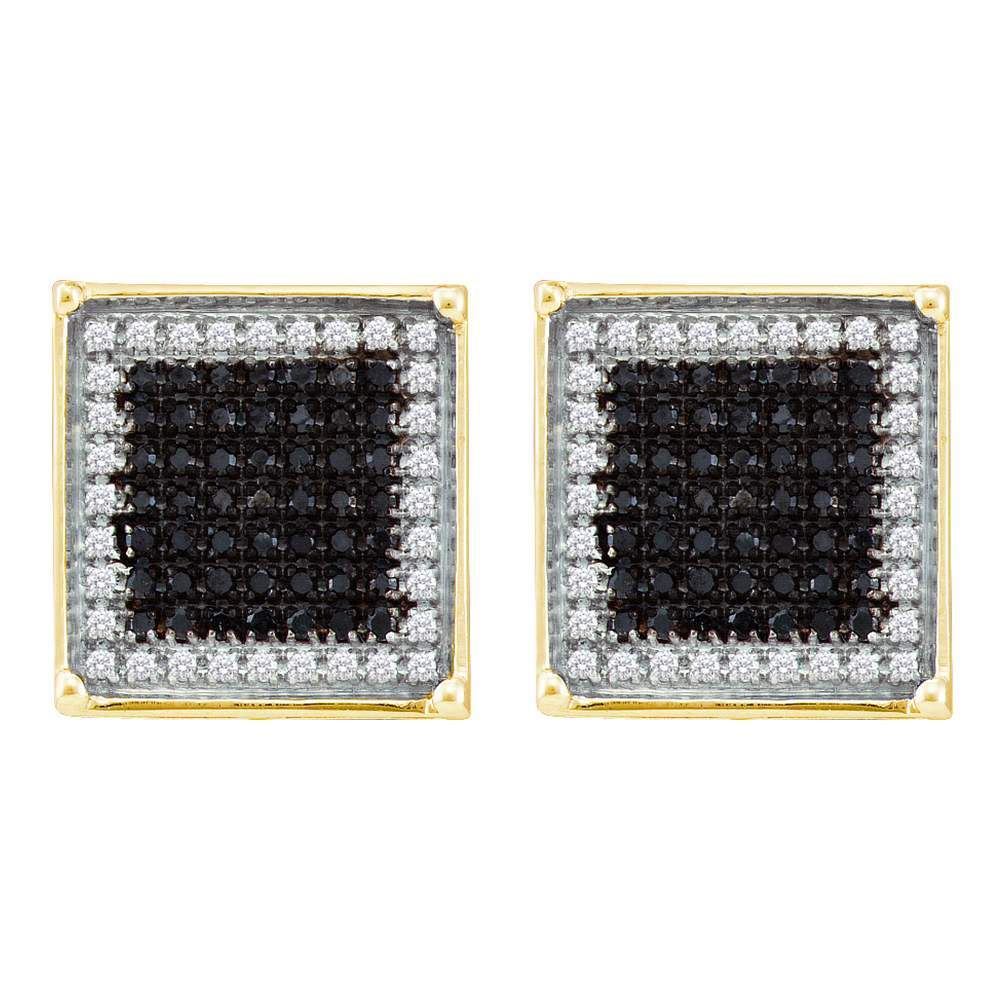 REF-37K5W- SKU: GD54755 ---- 0.90 CTWMens Black Color Diamond Square Cluster Earrings 10KT Yellow Gold