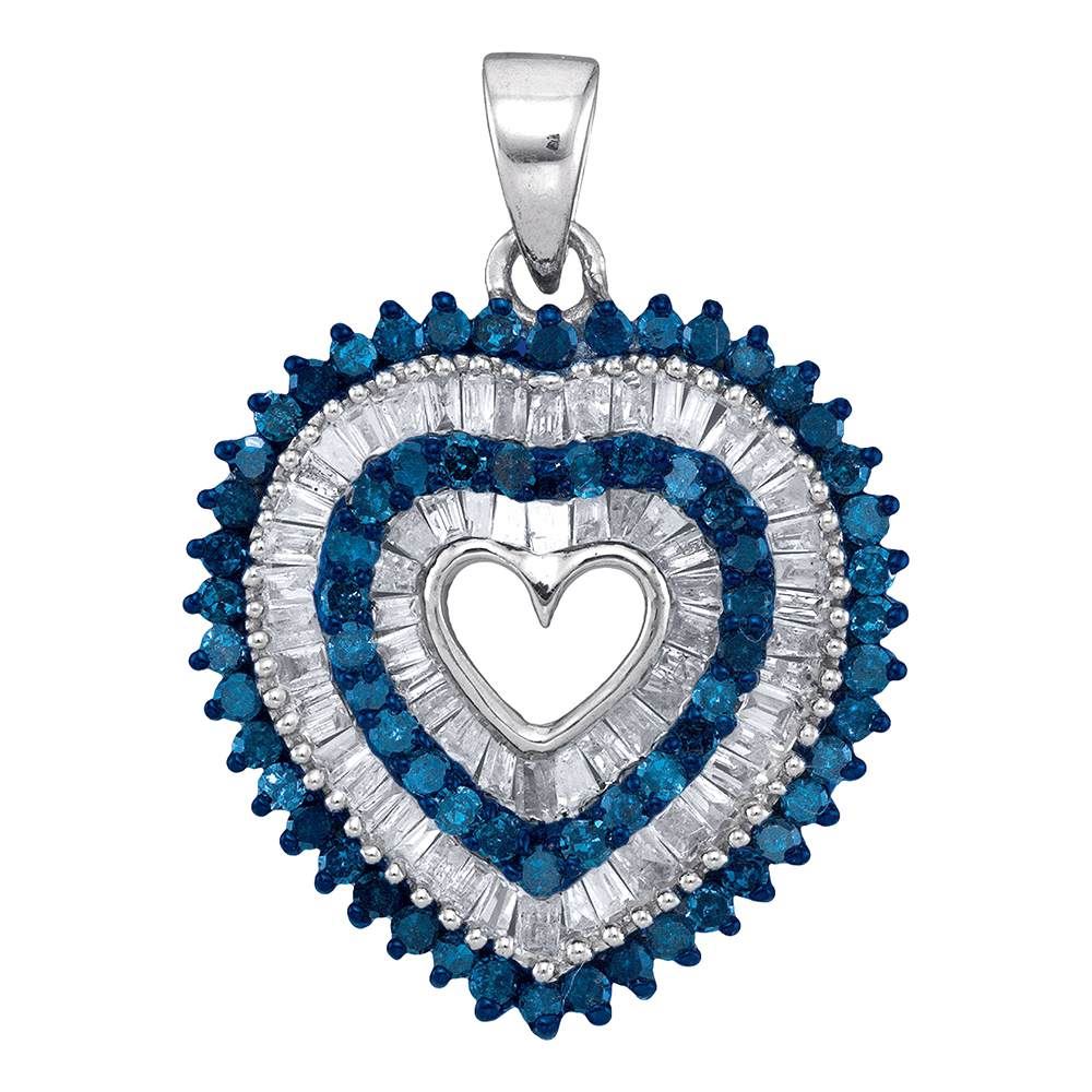 REF-34W4K- SKU: GD88859 ---- 0.90 CTWBlue Color Diamond Heart Outline Pendant 10KT White Gold
