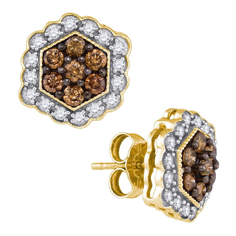 REF-41H9M- SKU: GD85864 ---- 0.90 CTWCognac-brown Color Diamond Hexagon Flower Earrings 10KT Yellow Gold
