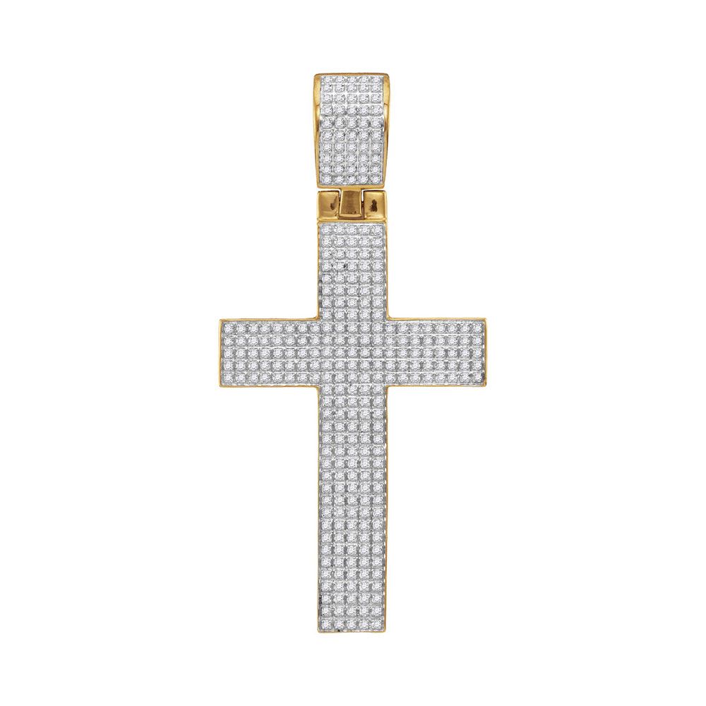 REF-75W2K- SKU: GD111668 ---- 0.90 CTWMens Diamond Roman Cross Charm Pendant 10KT Yellow Gold