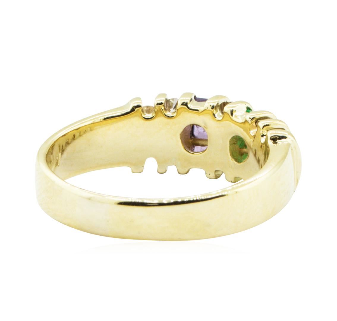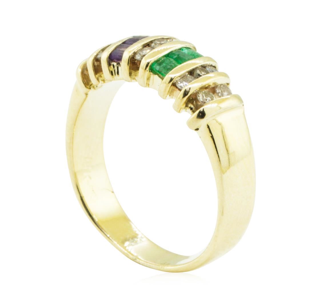0.90 ctw Diamond, Amethyst, and Emerald Ring - 14KT Yellow Gold