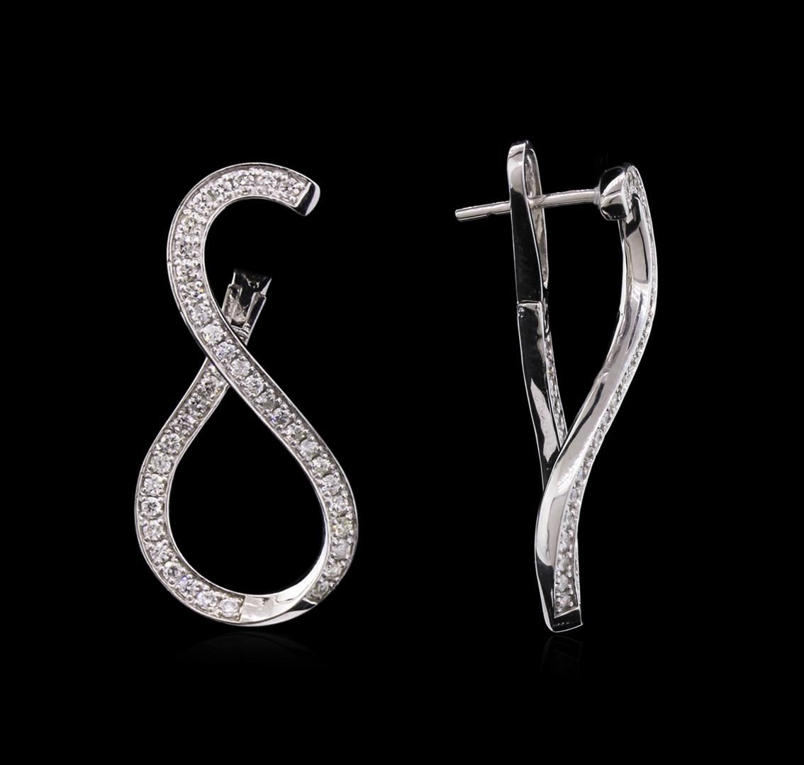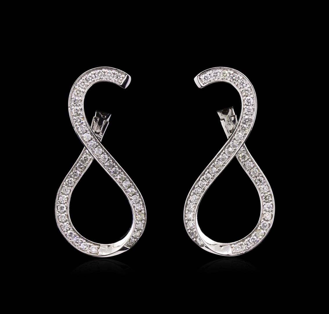 One pair of earrings featuring: 14KT white gold weighing 7.57 grams containing diamonds with a total weight of 0.90ct.