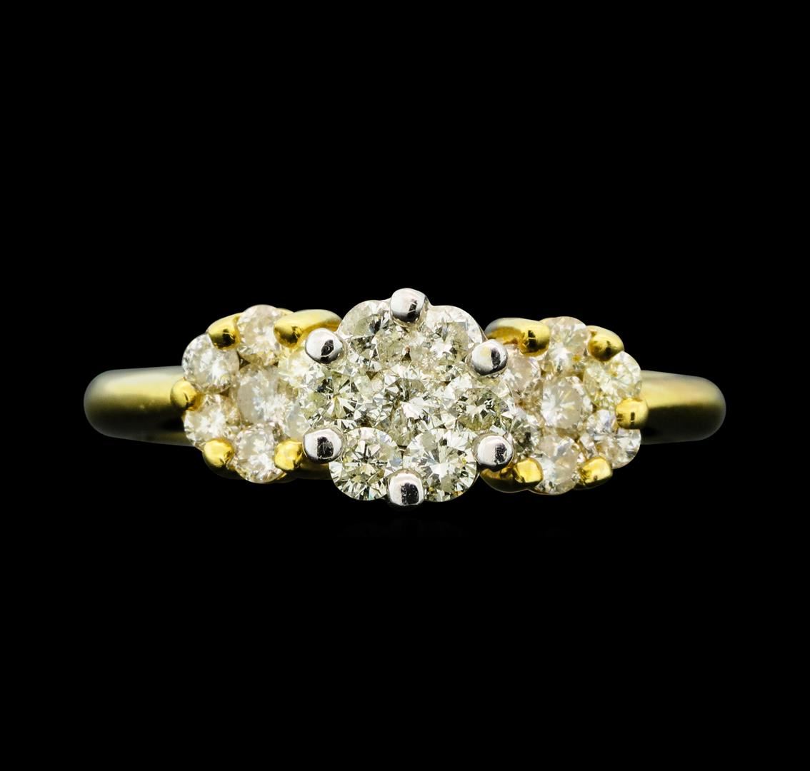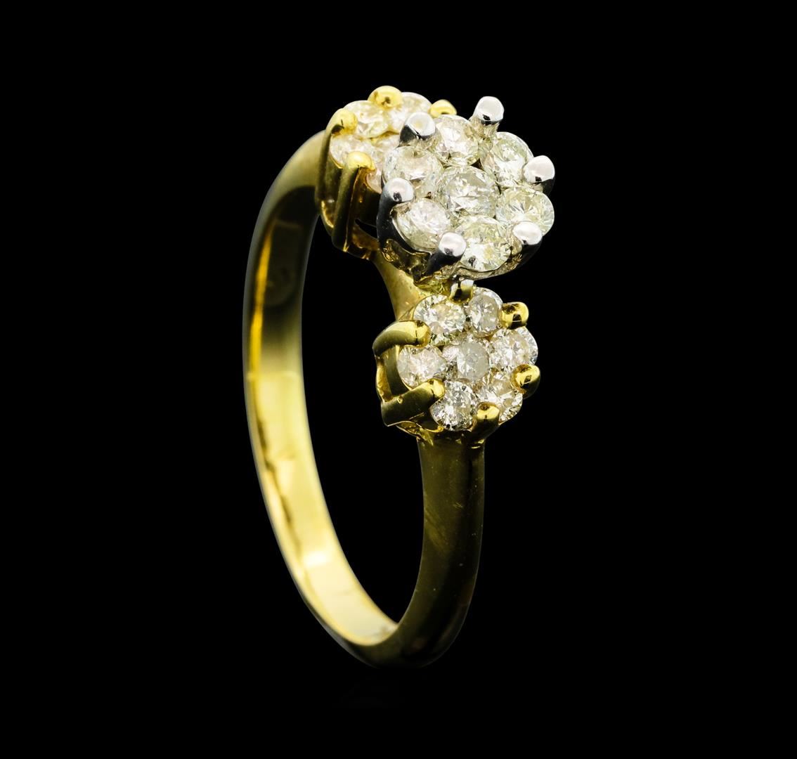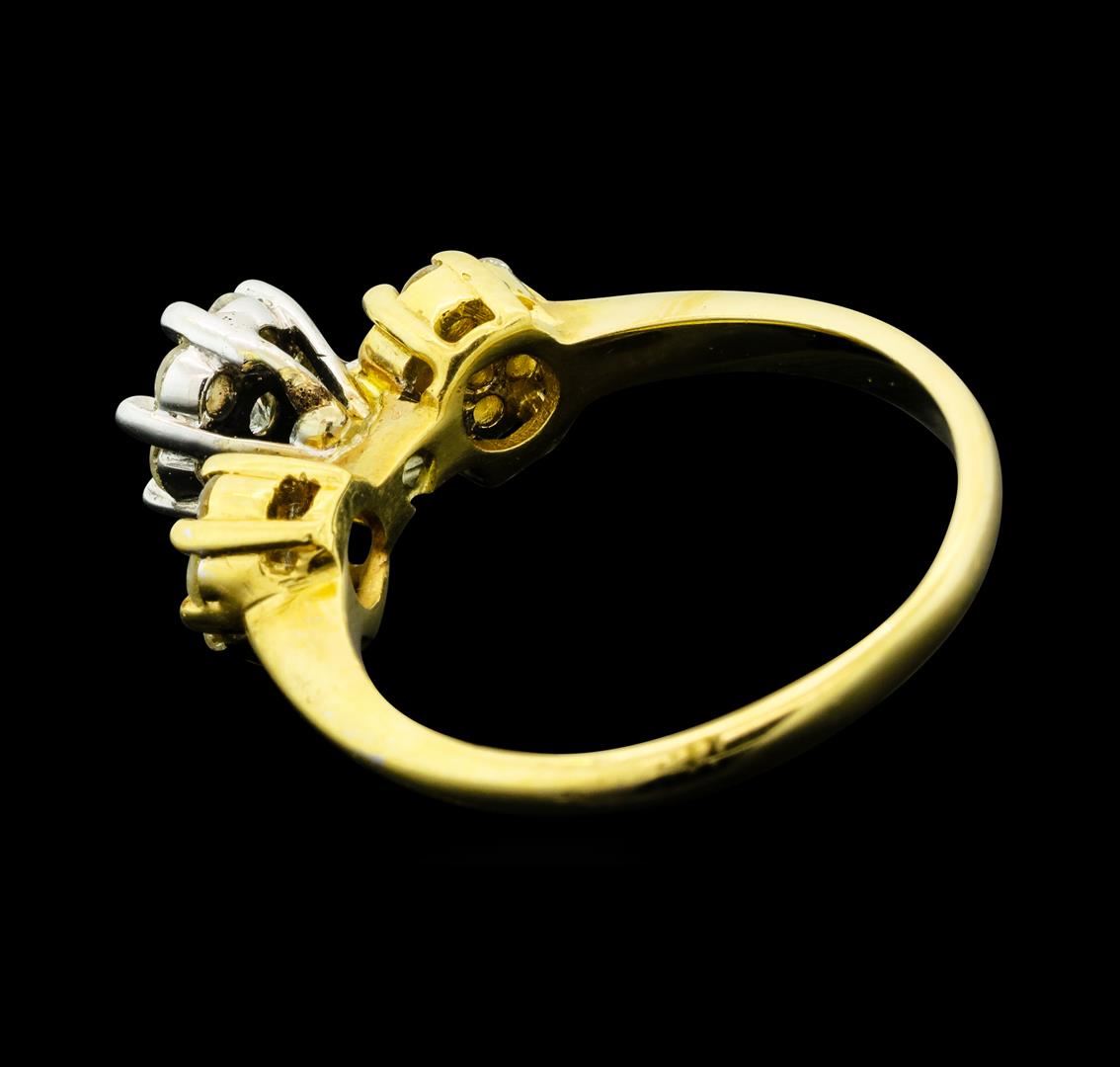 One electronically tested 14KT yellow and white gold lady's cast wedding ring with a bright polish finish. The featured lady's ring has a shank measuring 2.18 millimeters wide. Condition is used, good workmanship. Containing: Twenty-One prong set round brilliant cut diamonds, measuring 2.50 - 2.00 x 1.40mm (depth est.) approximate total weight of 21 Stones = 0.90ct. Graded in the setting. Clarity SI-2 to I-1. Color: I - J Cut Good. Total Weight of Diamonds 0.90ct.. Total Weight of Ring 3.90gm. GAS Appraised at $2,195.00.