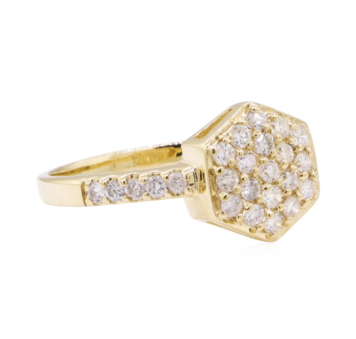One ring featuring: 14KT yellow gold weighing 3.2 grams containing diamonds weighing 0.90ctw. The ring has an hexagonal top.