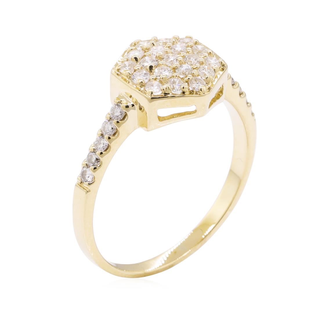 One ring featuring: 14KT yellow gold weighing 3.2 grams containing diamonds weighing 0.90ctw. The ring has an hexagonal top.