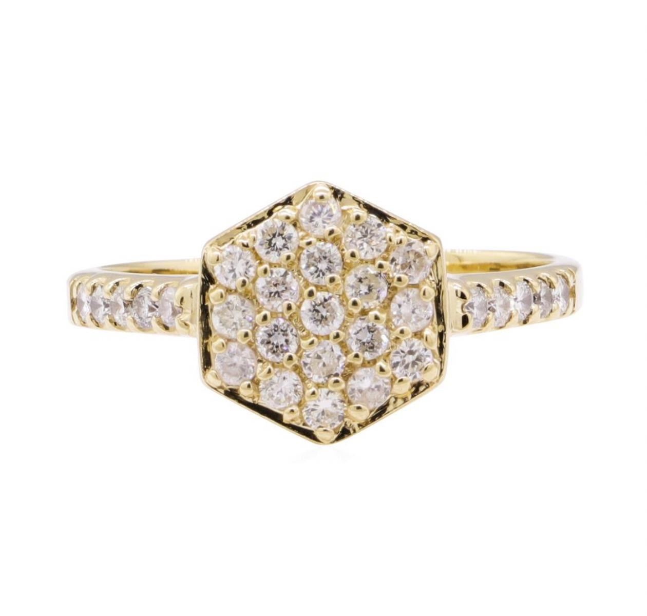 One ring featuring: 14KT yellow gold weighing 3.2 grams containing diamonds weighing 0.90ctw. The ring has an hexagonal top.
