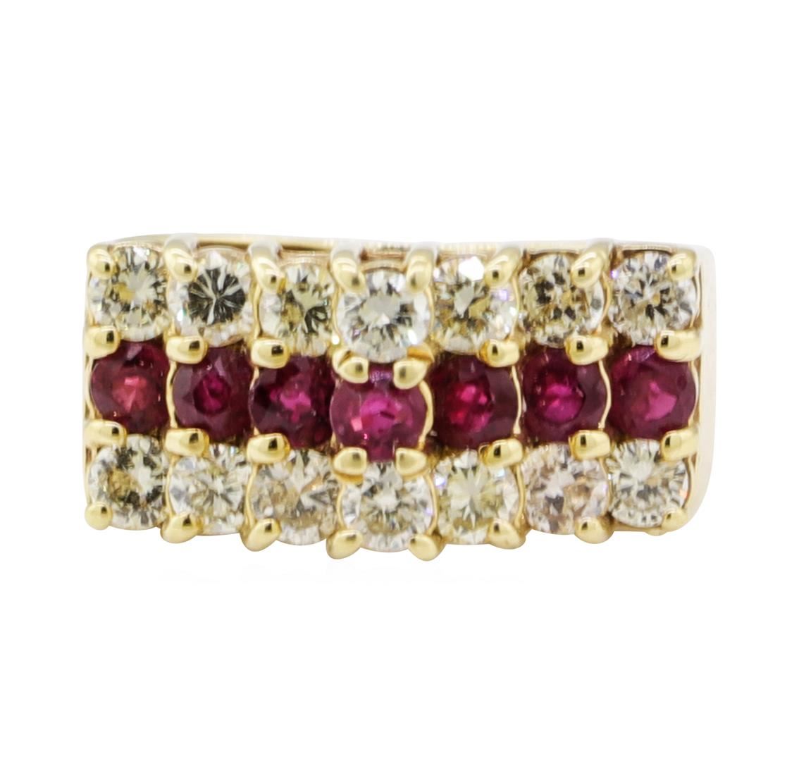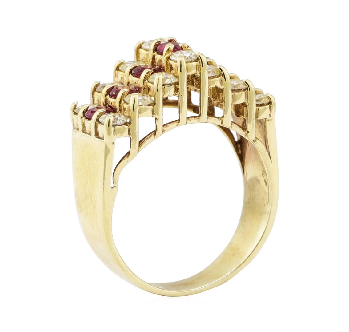 One ring featuring: 14KT yellow gold weighing 4.6 grams containing diamonds weighing 0.56ctw and rubies weighing 0.34ctw.