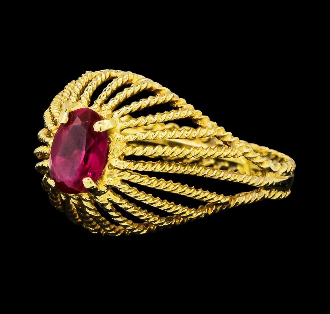 One lady's ring featuring: 14KT yellow gold weighing 3.1 grams containing one ruby weighing 0.90ct.