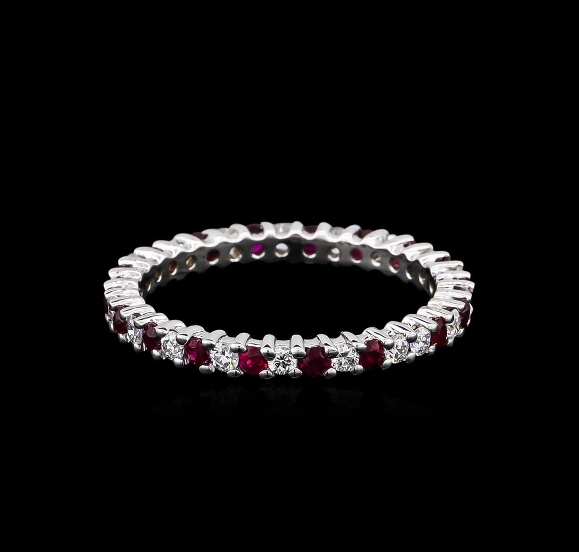 14K White Gold 0.70 ct Diamond 0.90 ct Ruby Ring. Description: Metal: 14k solid white gold. Face Measurements: 2.5mm. Size: 8.5. Shank Width: 2.5mm. Finish: bright polish. Total Item Weight: 2.5 grams. Markings: stamped 14K. Main Stone: diamond. Quantity: 19. Shape: round. Color: white. Carat Total Weight: 0.70. Measurements: 2mm. Treatment: none. Setting: none. Color Grade: G-H. Clarity: SI1-SI2. Cut: very good. Secondary Stone: ruby. Quantity: 18. Shape: round. Color: red. Carat Total Weight: 0.90. Measurements: 2.00mm. Treatment: none. Setting: prong. Hue: red-purple. Saturation: moderately strong. Tone: dark. Clarity: type 2. Cut: very good. Excellent Workmanship. Gemstones graded in the mounting. BHGL Appraised.