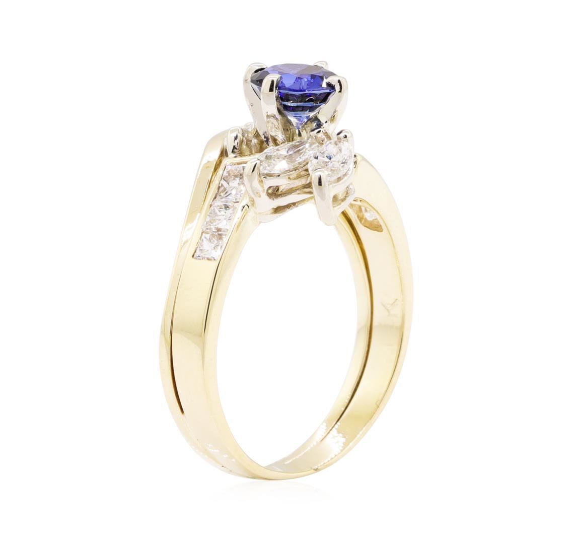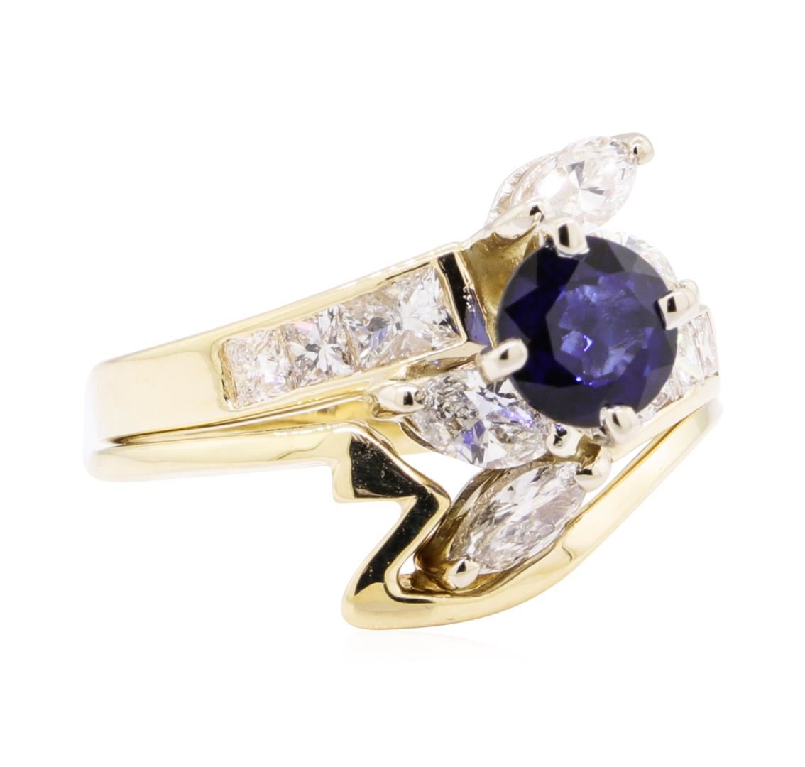 One lady's ring featuring: 14KT yellow gold weighing 5.7 grams containing one sapphire weighing 0.90ct and diamonds weighing 1.00ctw.