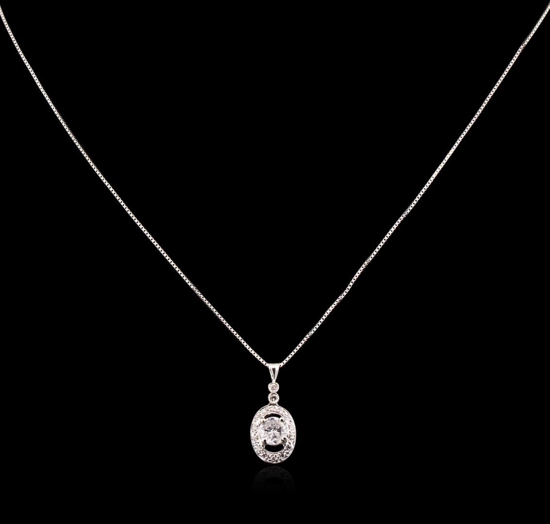 One pendant with chain featuring: 14KT white gold weighing 4.00 grams containing diamonds with a total weight of 0.90ct.