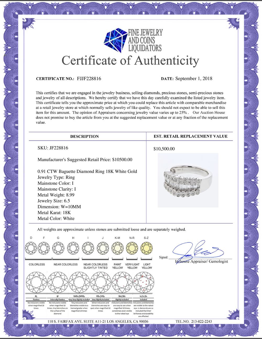 REF-137X4R - JF228816 ---- 0.91 CTW Baguette & White Round Diamond Ring 18K White Gold