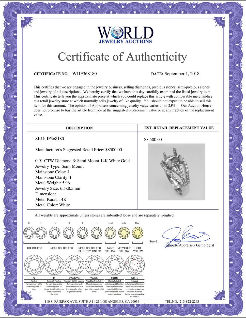 REF-110N3Y - JF368180 ---- 0.91 CTW White Round Diamond Semi Mount Ring 14K White Gold