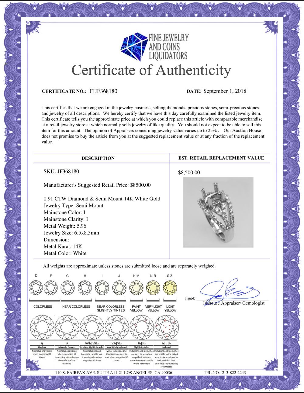 All Gia and EGL Diamonds are subject to availability due to consignors’ terms with us.
