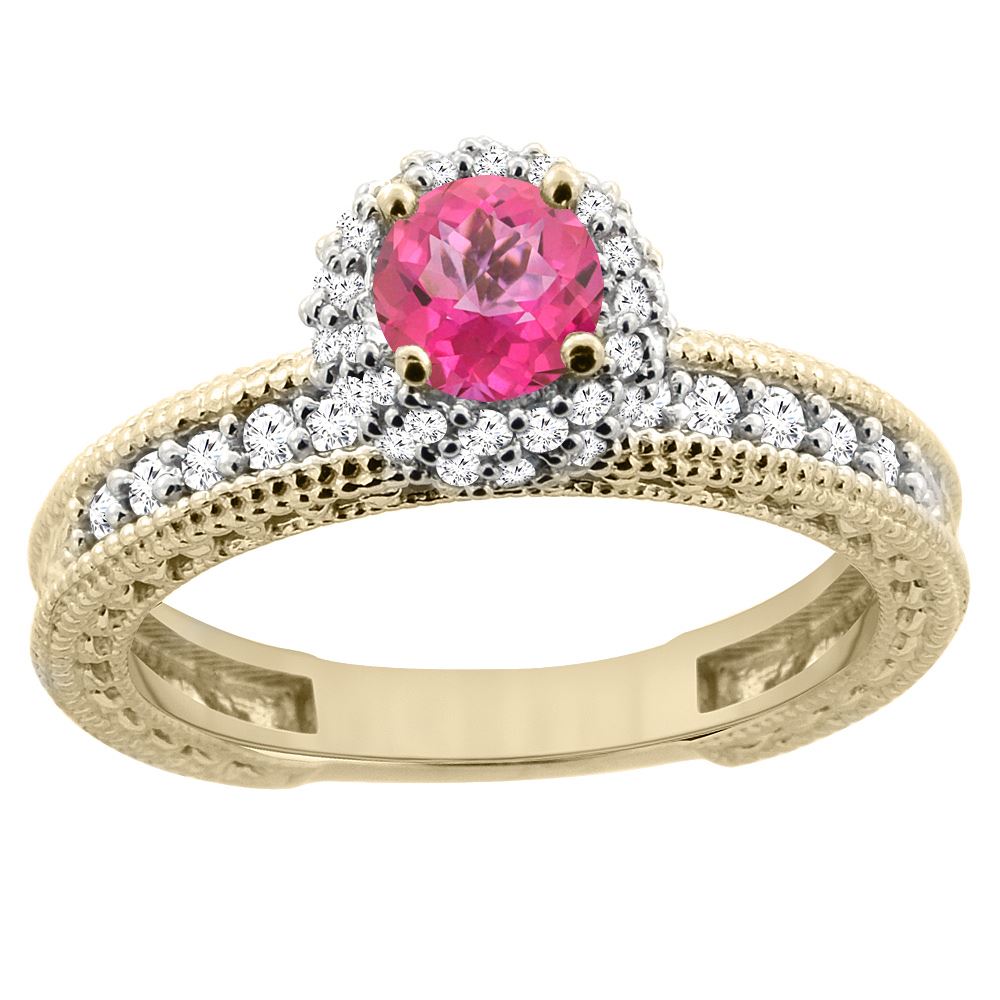 REF-65V9R - SKU: SC-CY406289 ---- 0.91 CTW Pink Topaz & Diamond Ring 14K Yellow Gold