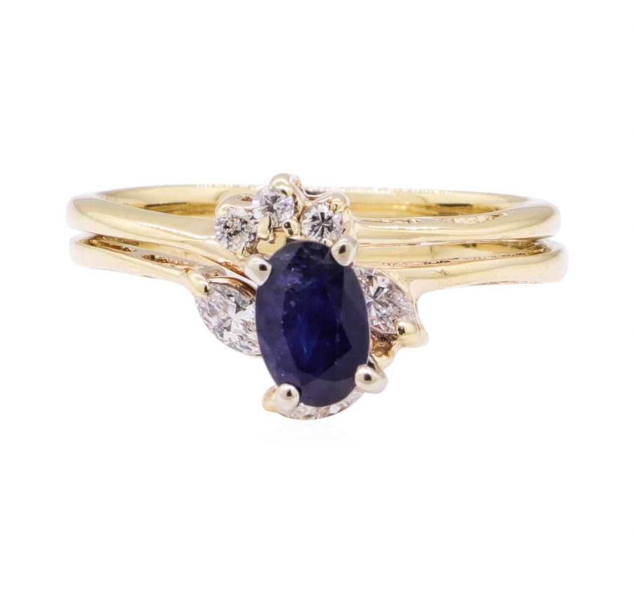 One 0.91ctw Blue Sapphire and Diamond Wedding Set - 14KT Yellow Gold.